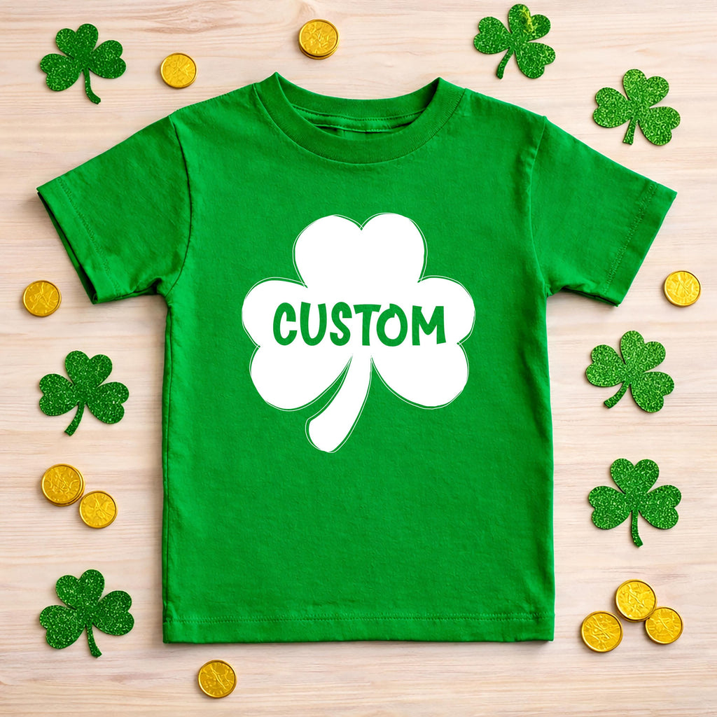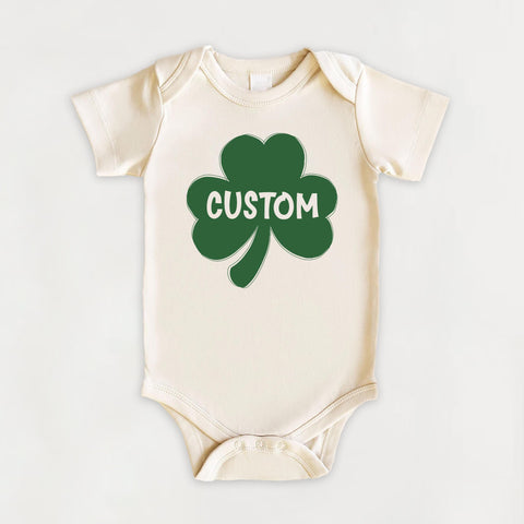Celebrate St. Patrick’s Day in style with this Personalized Shamrock baby shirt — perfect for cute photos, first holidays, and Irish pride.