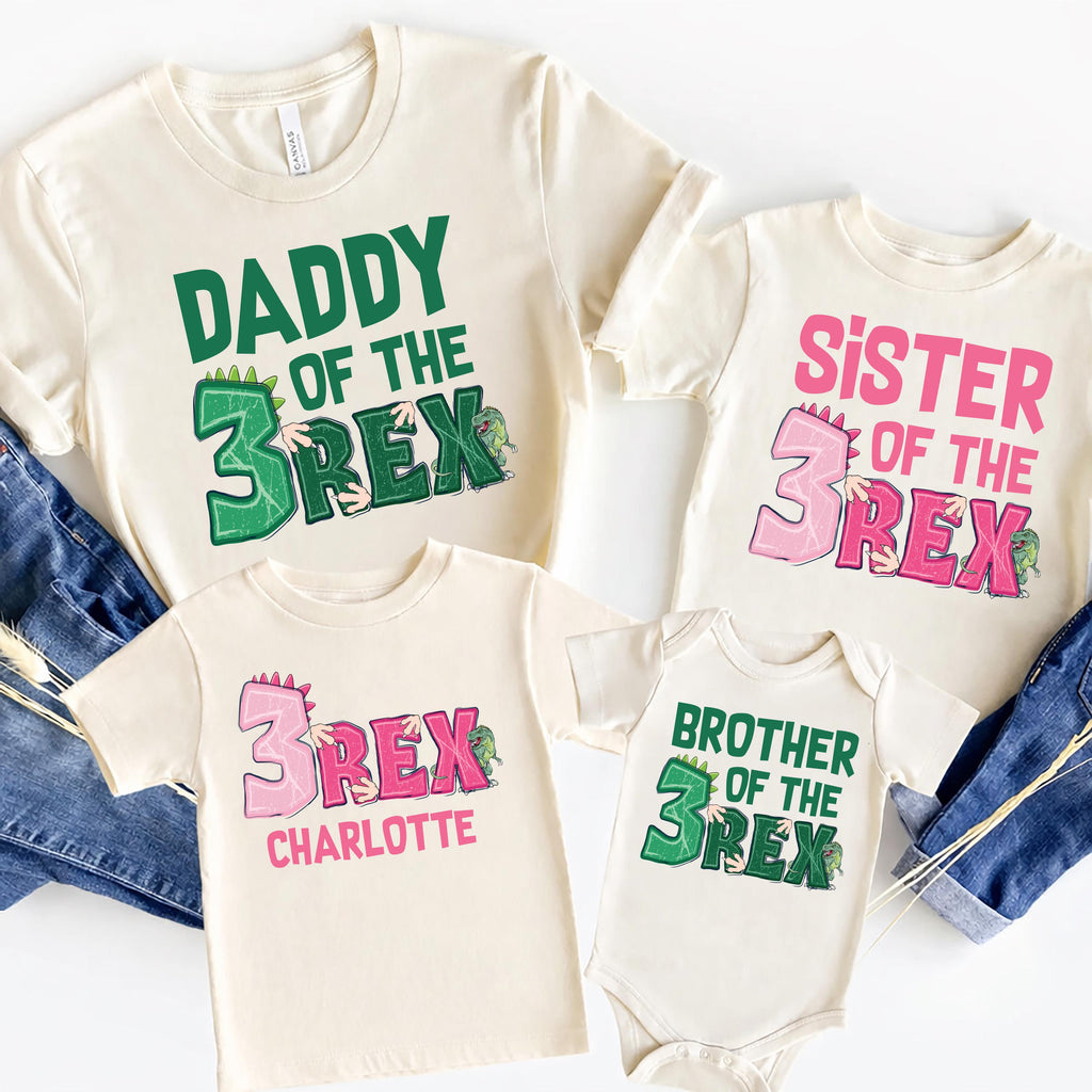 Celebrate your child's special day with our personalized three rex dinosaur birthday shirts, perfect for a fun dinosaur birthday theme! These cute and vibrant t-rex birthday shirts are designed specifically for your birthday boy, making them an excellent choice for a 3rd birthday party. Crafted from soft, comfortable materials, our 3rd birthday shirts feature adorable dinosaur designs that your little one will love to wear. Customize the shirt to make it truly unique, as it will be the perfect outfit for any dino-loving kid. Whether itβs for a big birthday bash or a small family gathering, this boy dinosaur shirt will ensure your child feels special on their big day. Don't miss out on the perfect dino birthday shirt for your little dinosaur enthusiast!
