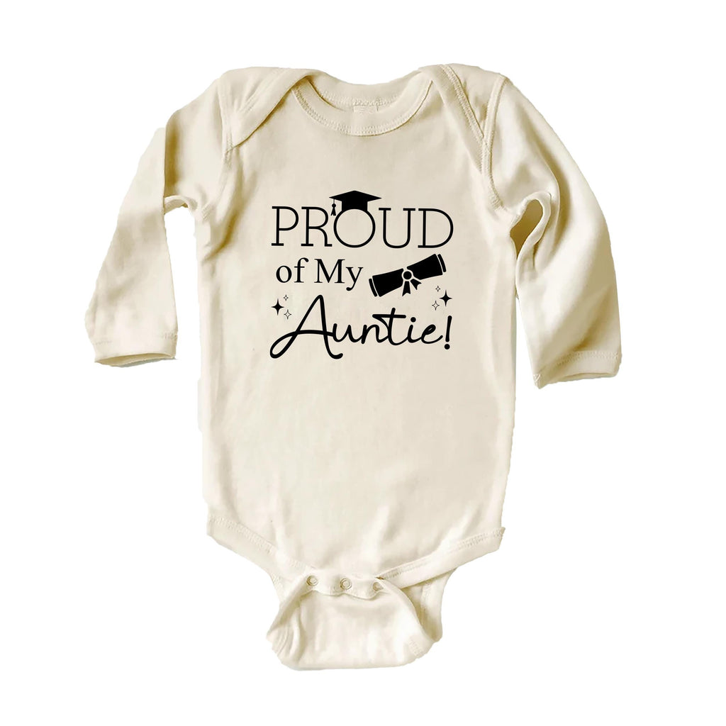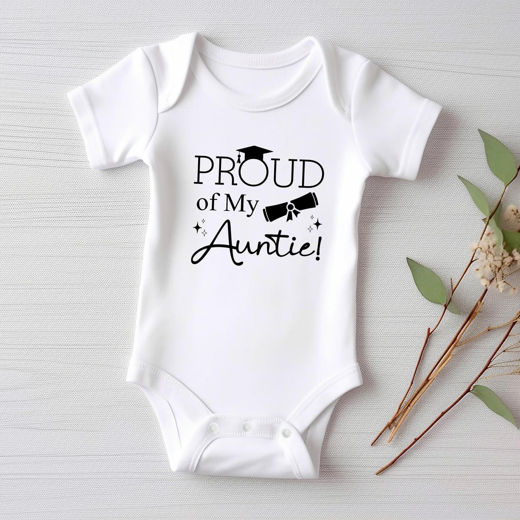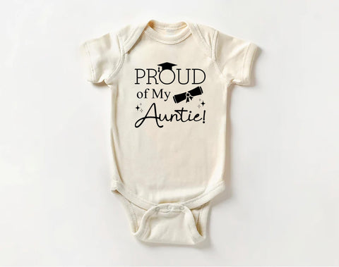 Made for newborns, infants, and toddlers, this auntie-themed baby outfit is crafted from soft, high-quality fabric to keep your little one cozy. Ideal for a new aunt announcement, a thoughtful graduation celebration, or just because she's the best aunt ever, this outfit makes a meaningful and memorable gift. Order now and surprise Auntie in the sweetest way!