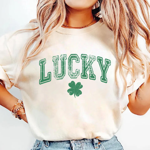 Celebrate in style with this Retro Lucky St. Patrick’s Day shirt — a cute and festive look women will love for Irish celebrations.