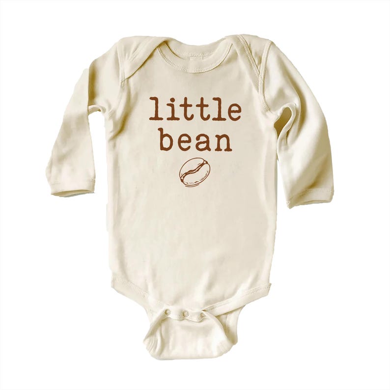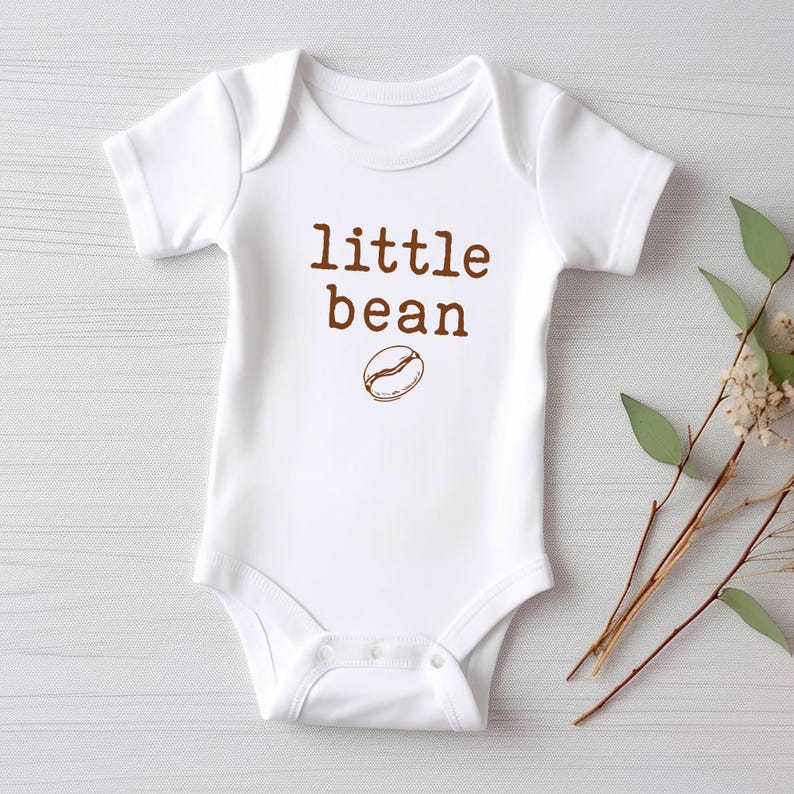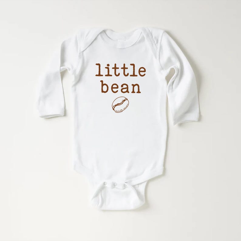 Celebrate your little one with this adorable "Little Bean" baby bodysuit, baby shirt, and toddler sweatshirt! Featuring a retro vintage coffee-inspired design, this minimalist outfit is perfect for first birthdays, baby announcements, and fun everyday wear for coffee-loving families.