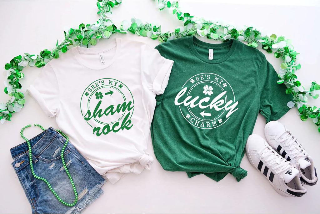 St Patrick’s Day Matching Couple Shirt, Saint Paddys Lovers Shirt, She’s My Shamrock Tee