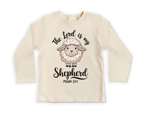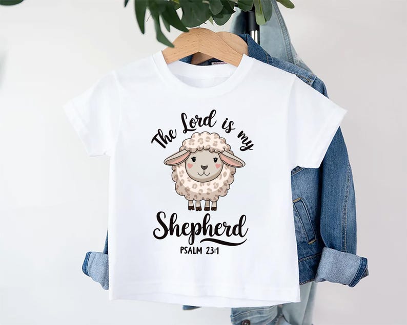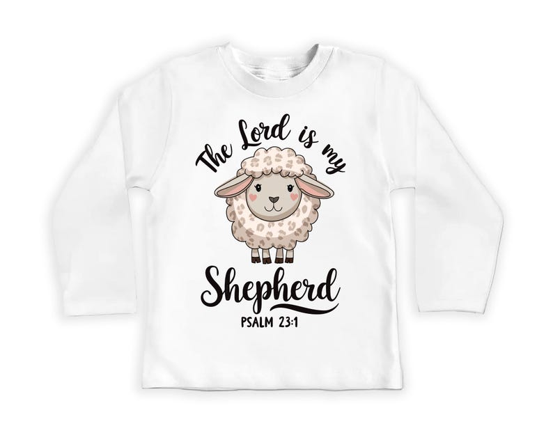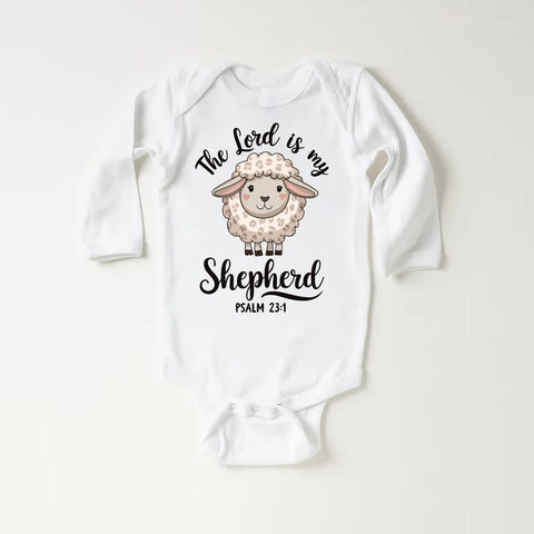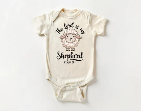 Celebrate faith with this adorable "The Lord Is My Shepherd" baby bodysuit, baby shirt, and toddler sweatshirt! Featuring Psalm 23:1 in a retro design, this Christian outfit is perfect for church gatherings, baby showers, baptisms, and inspiring everyday wear for little believers.