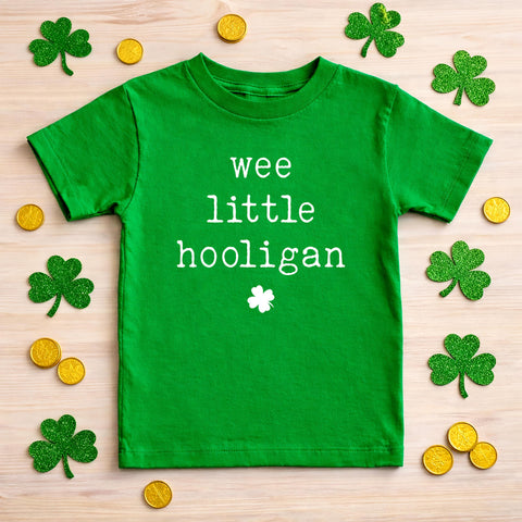 Dress your little one in festive fun with this “Wee Little Hooligan” toddler shirt — perfect for St. Patrick’s Day celebrations and Irish cuteness.