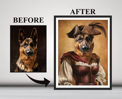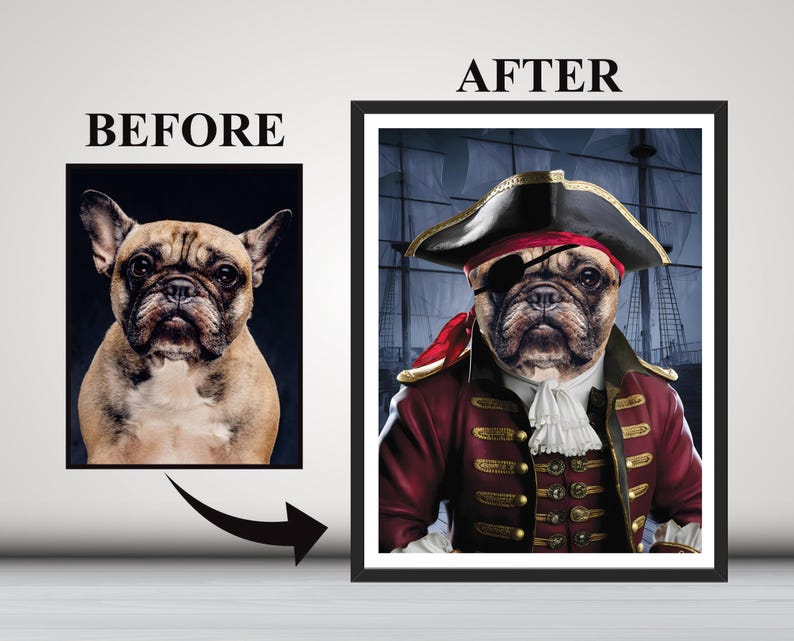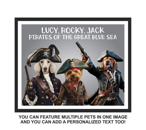 Elevate your décor with a Custom Pirate Pet Portrait Poster, perfect for any living room, pirate-themed space, or your pet-loving dog dad or mom’s favorite corner.