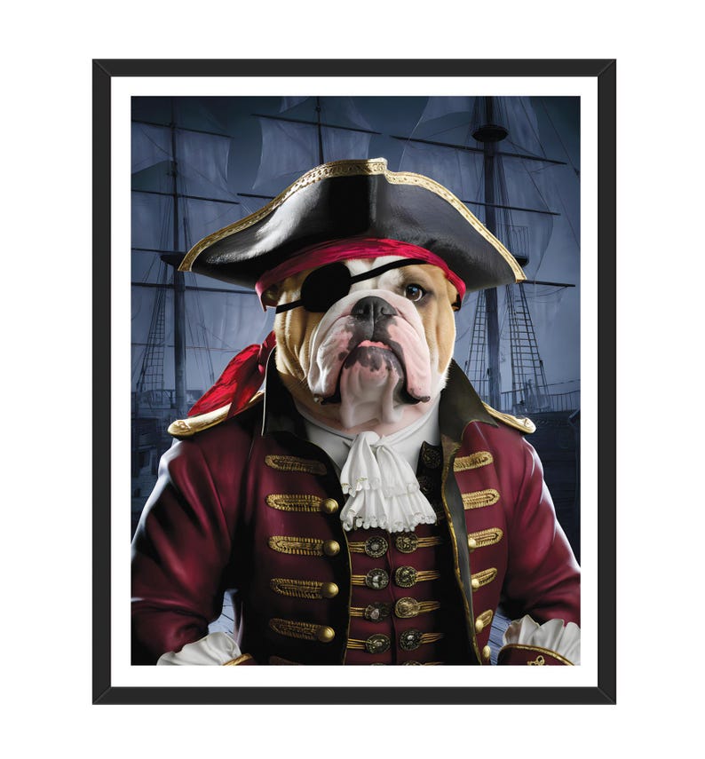 Add a touch of nautical elegance with a Premium Framed Pirate Pet Portrait Poster, a sophisticated gift for dog dads, moms, or pet lovers.