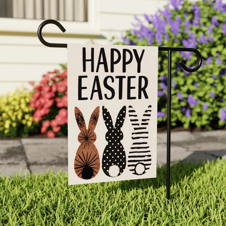 Happy Easter Bunnies Welcome Garden Flag, 12x18 Inch Double Sided, Rabbit Easter Day Yard Holiday Decorations, Easter Bunnies Flag.