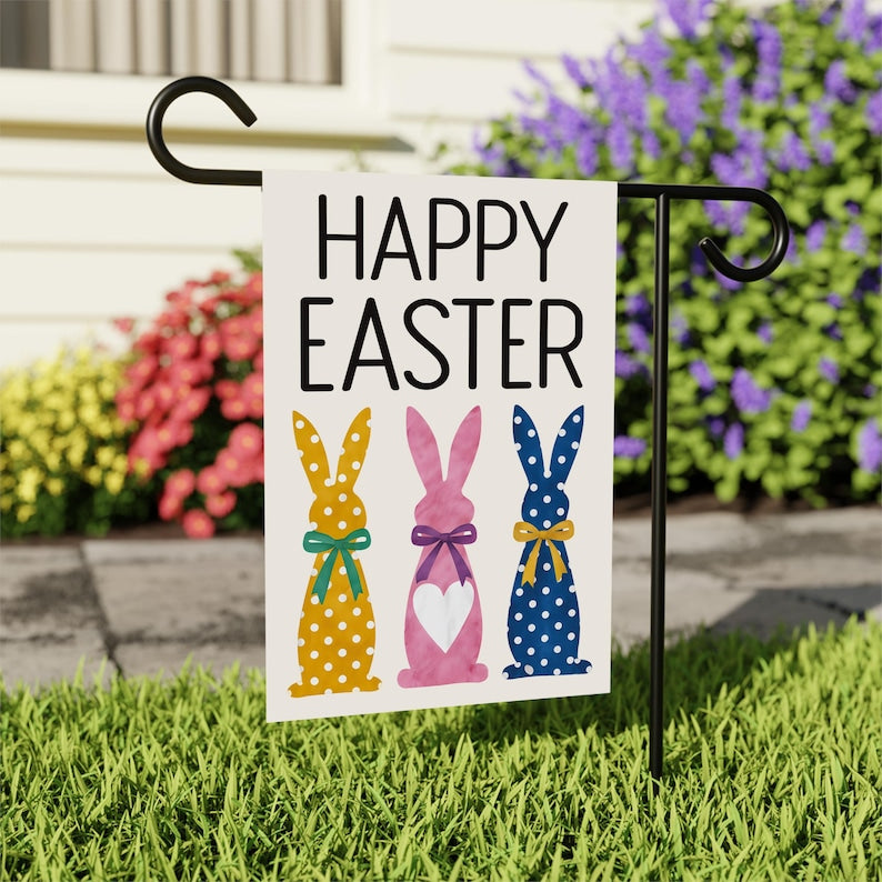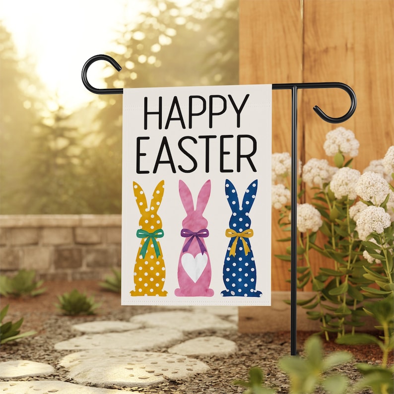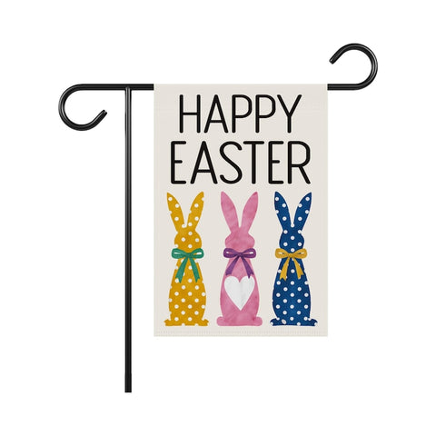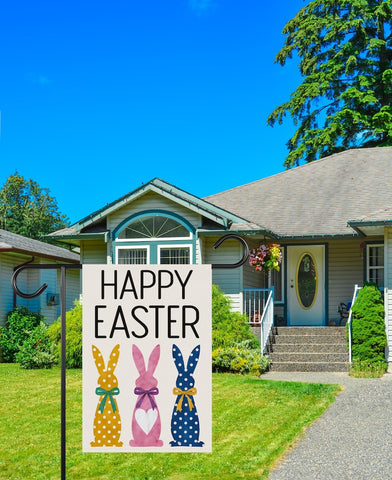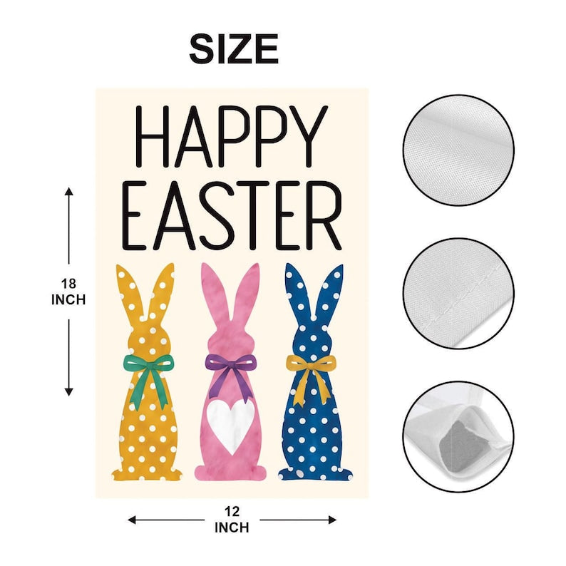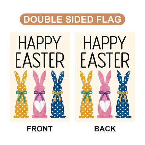 Happy Easter Polka Dot Rabbit Welcome Garden Flag, 12x18 Inch Double Sided, Love Heart Bunny Bow Easter Day Yard Decorations, Bunny Flag.