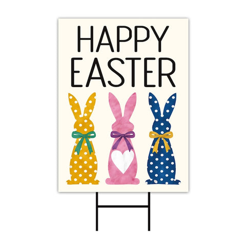 Visible Text Long Lasting and Rust Free. UV Printed Coroplast Happy Easter Polka Dot Rabbit Welcome Yard Sign.