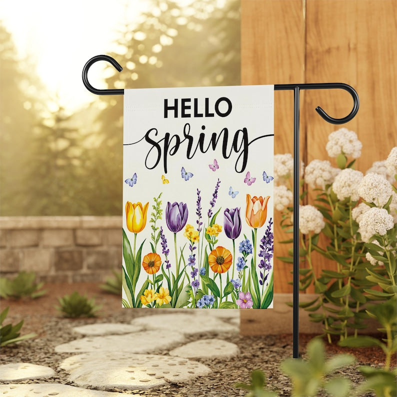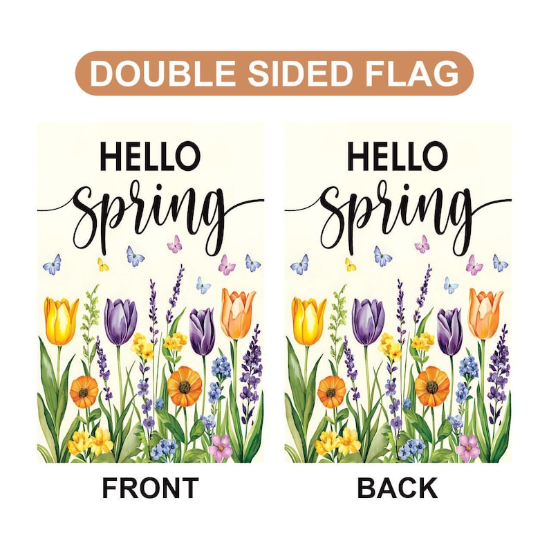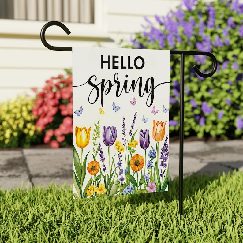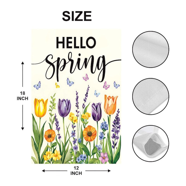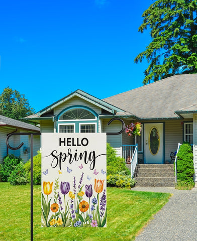 Hello Spring Tulip Lavender Welcome Garden Flag, 12x18 Inch Double Sided, Seasonal Flower Yard Holiday Decorations, Easter Hello Spring Flag.