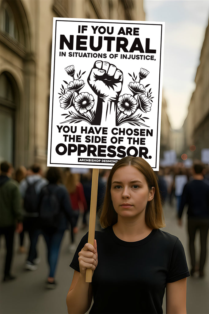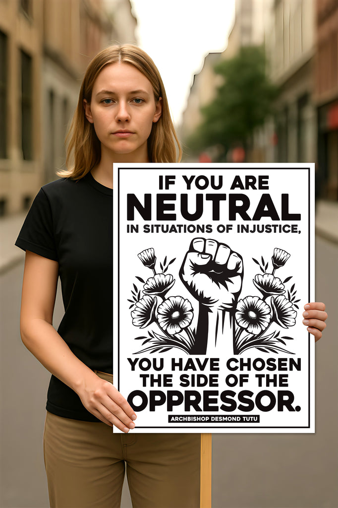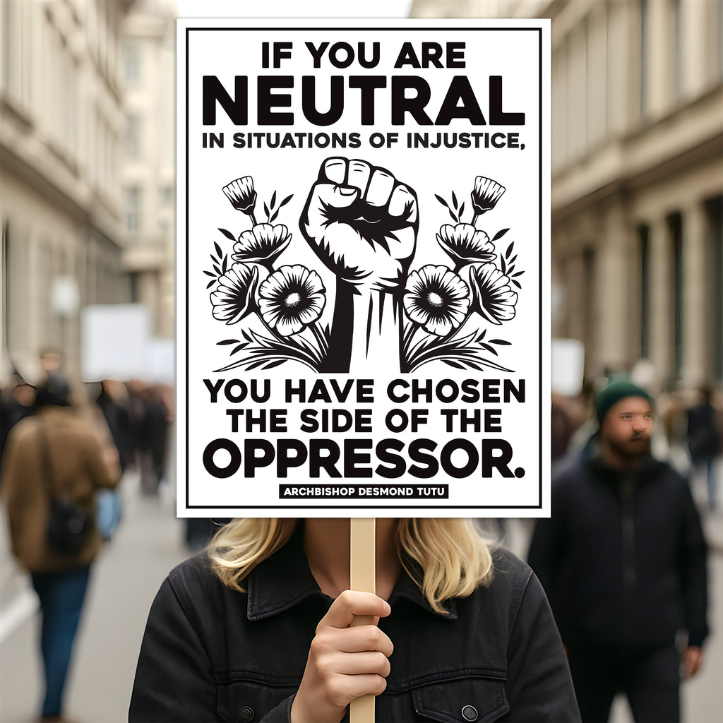 If You Are Neutral in Situations of Injustice Protest Sign, Anti-Trump, Political Activist Rally Sign, Resist Fascism Protest Poster