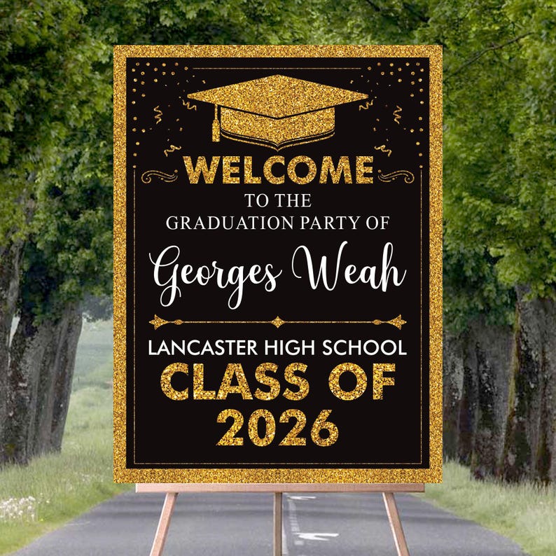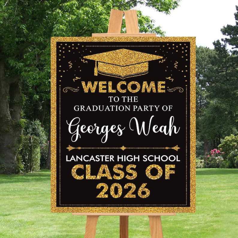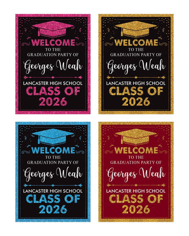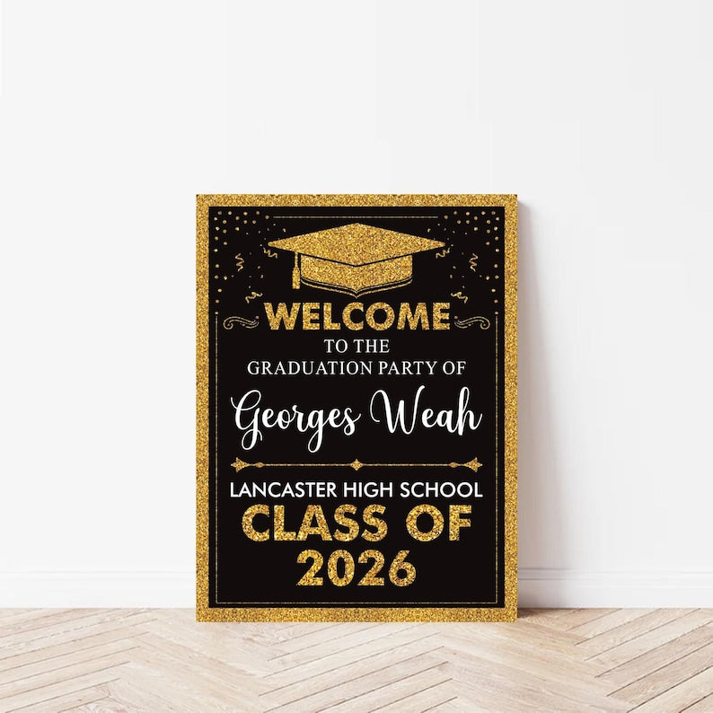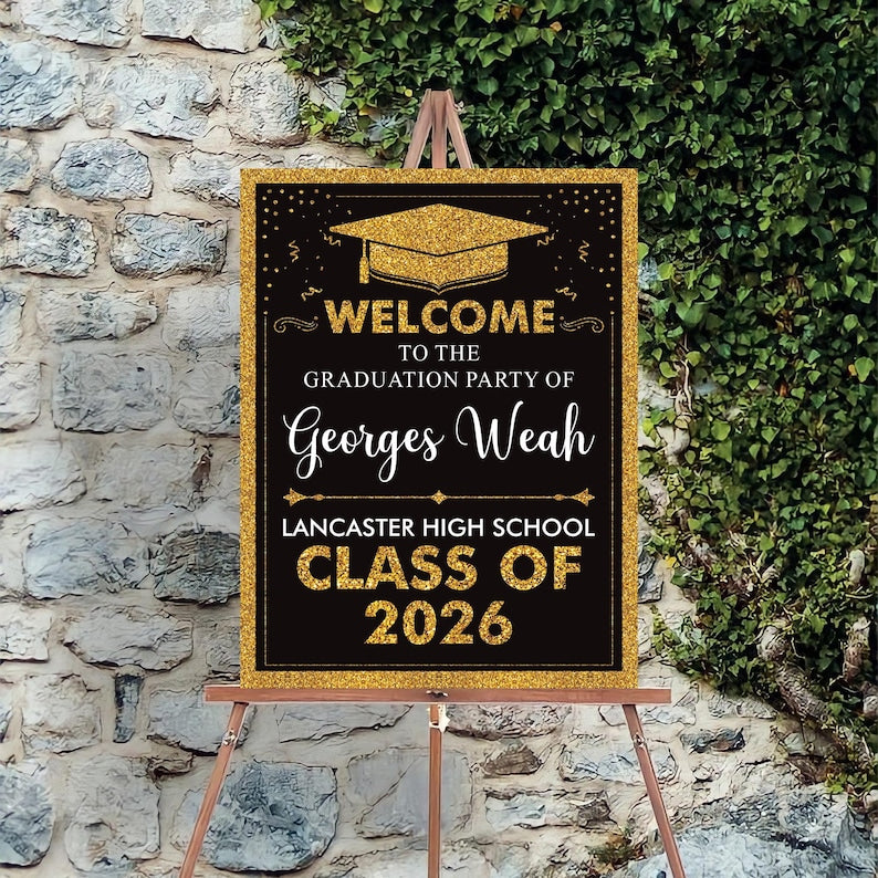 Make your graduate's big day even more special with this Personalized Graduation Welcome Sign! Designed for Class of 2026 celebrations, this sign is the perfect way to greet guests and create a memorable party atmosphere. Whether displayed at the entrance, on a welcome table, or as a backdrop, this custom graduation sign adds a personalized touch to your event.