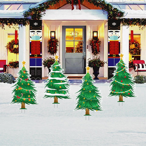 Christmas Tree Yard Sign Cutouts, Christmas Tree Theme Decorations Xmas Tree Walkway Props, Christmas Tree Yard Signs With Metal Stakes. Economical and durable, our Coroplast Yard Signs are a staple of outdoor advertising. These Christmas Tree Pathway Walkway Tree Themed Party Xmas Yard Cutouts Outdoor full color direct printed graphics are vertically fluted for use with a Stakes. Coroplast is typically used for yard, parking, real estate, and election signs. They are waterproof. Crafted with care, each piece is made to order, ensuring a unique, personalized touch just for you