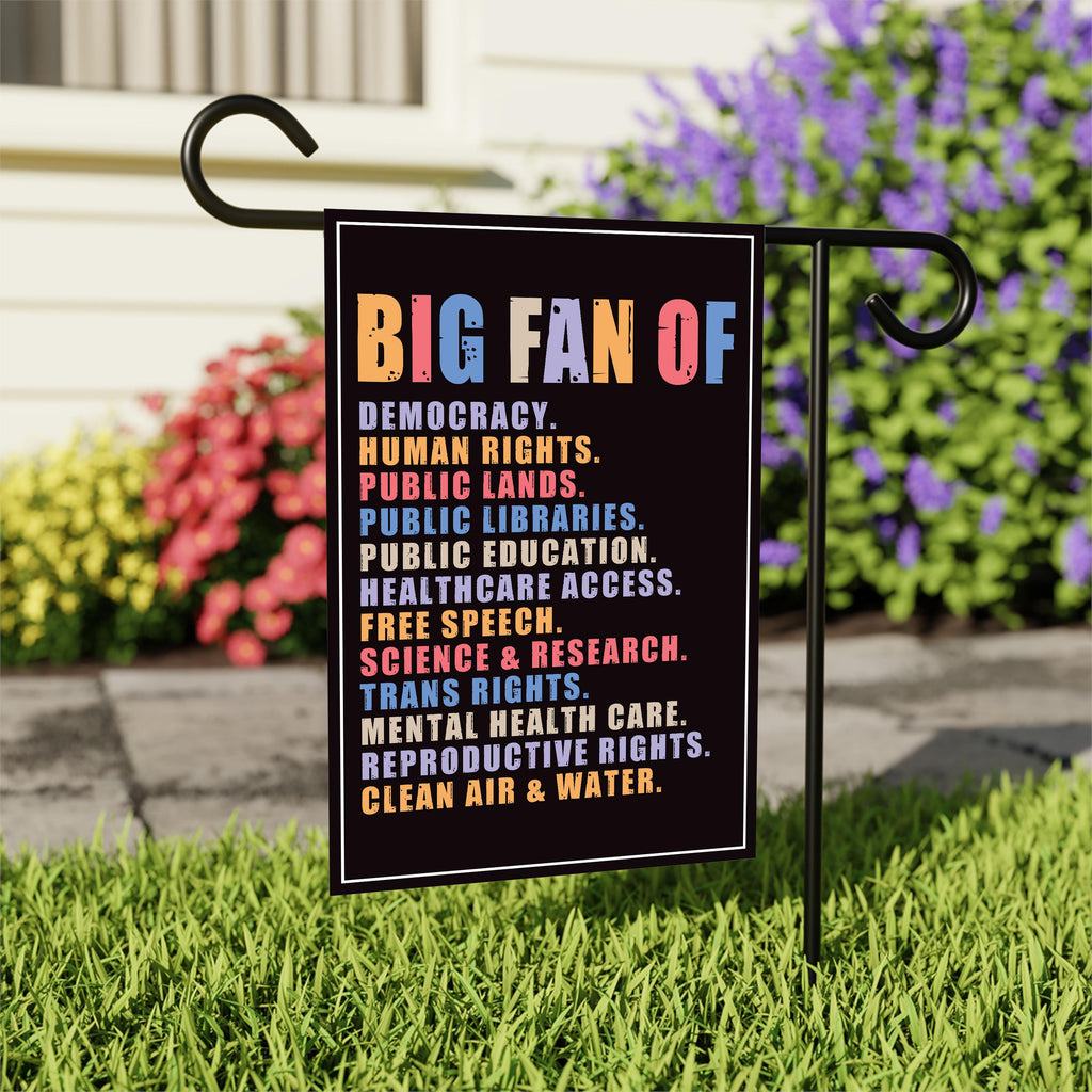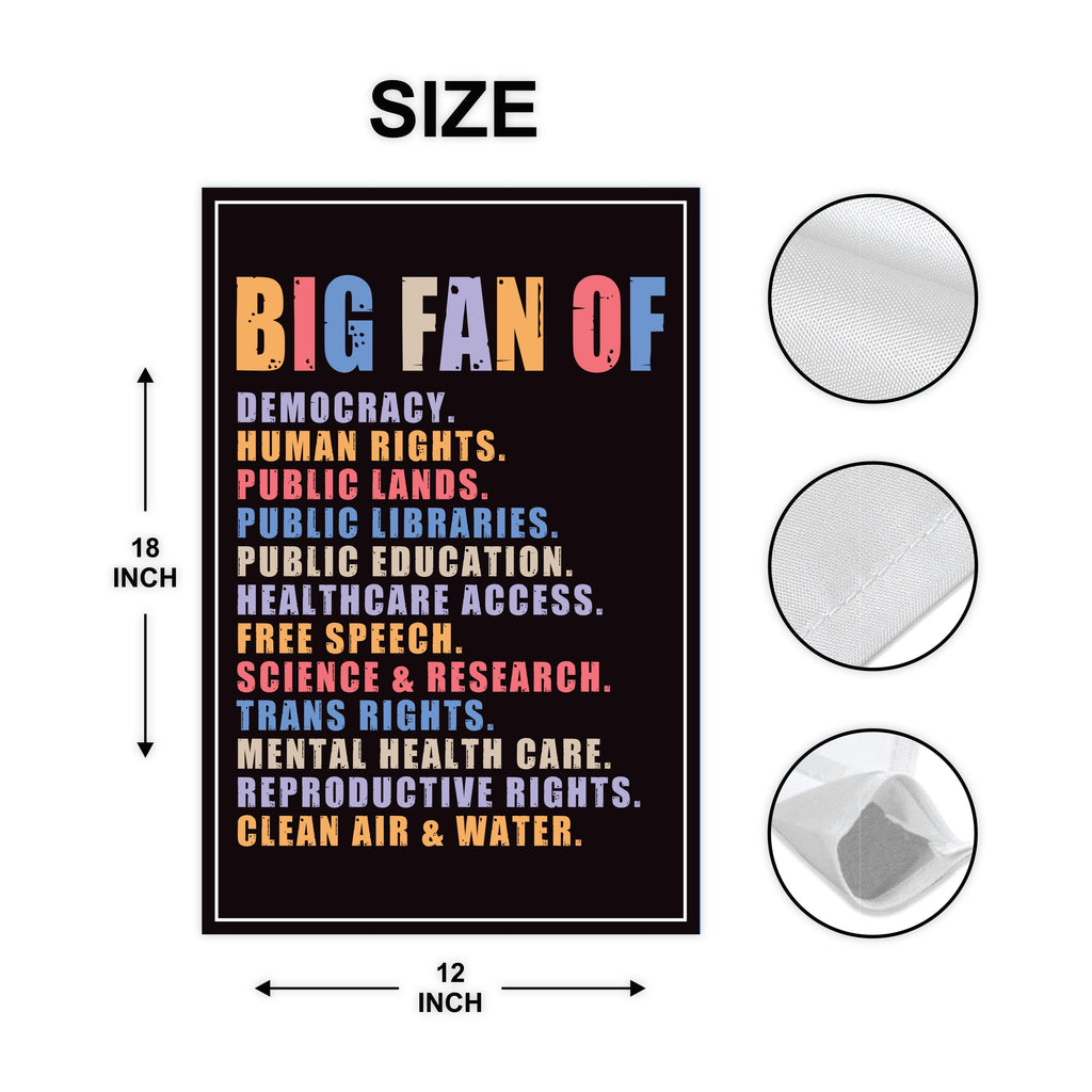 Big Fan of Human Rights Garden Flag, 12x18 Inch Double Sided, Anti-Trump Flag, Human Rights Flag, Anti Racism Flag, Anti Fascism Sign