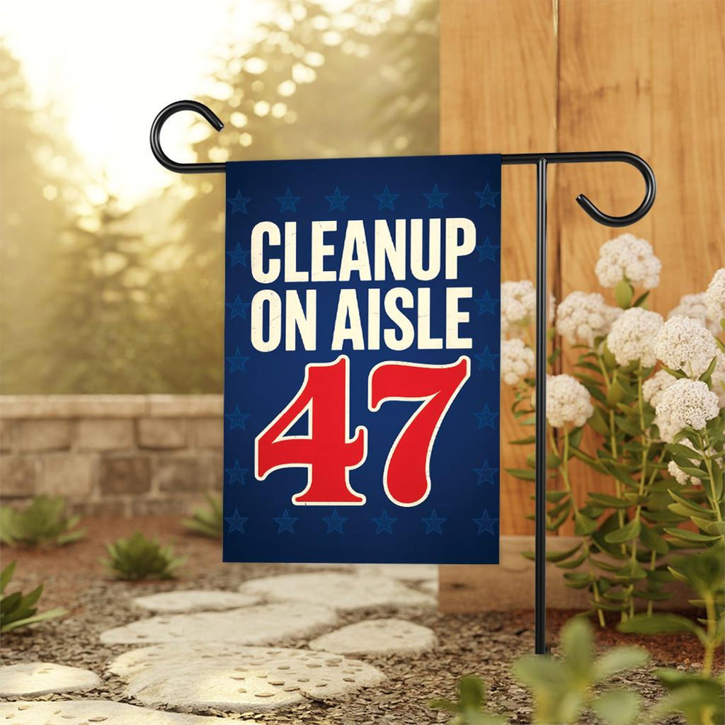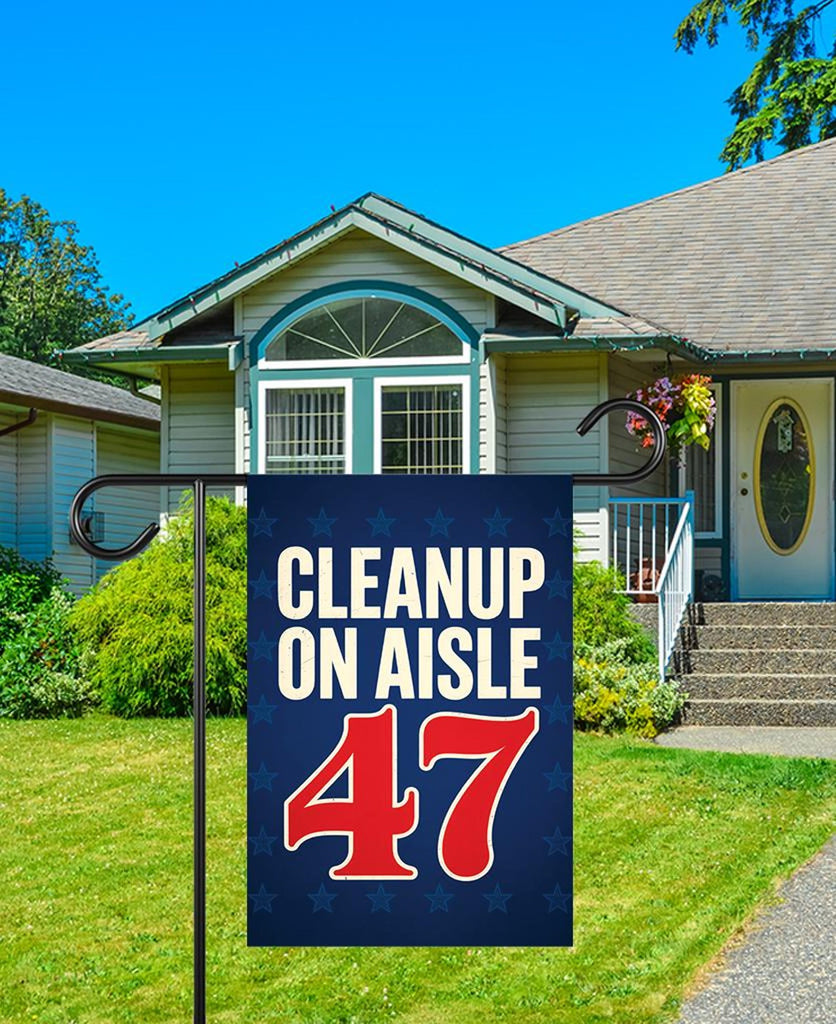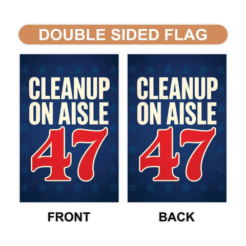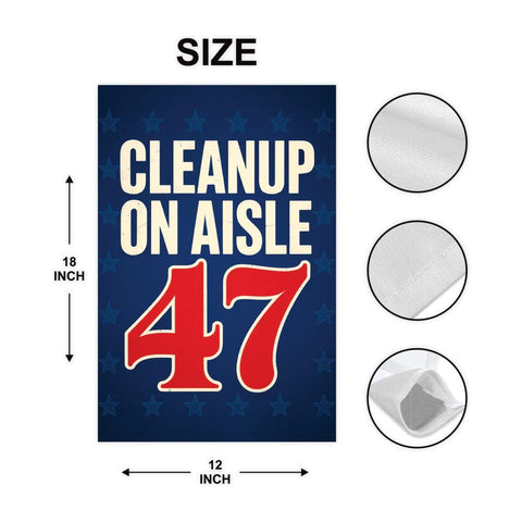 Clean Up on Aisle 47 Garden Flag, 12x18 Inch Double Sided, Anti-Maga Protest Flag for Freedom and Democracy, Anti-Trump Flag, Since 1776 Patriotic, Resist Racism Flag, Resist Fascism Flag