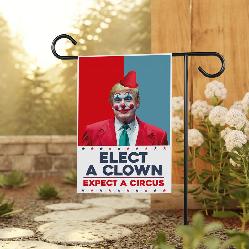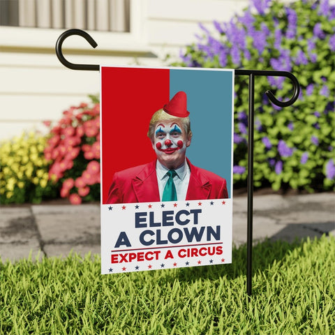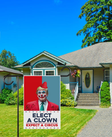 Elect A Clown Expect A Circus Garden Flag, 12x18 Inch Double Sided, Resist Hate, Anti-Trump Flag, Resist Racism Flag, Resist Fascism Flag.