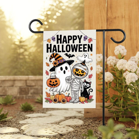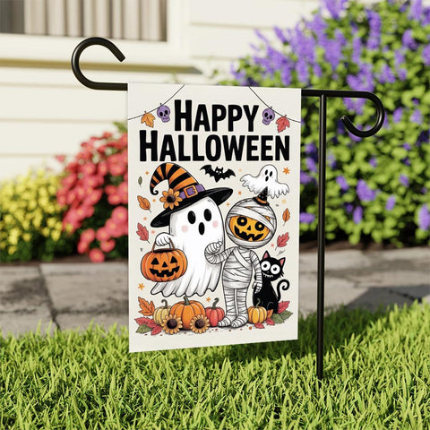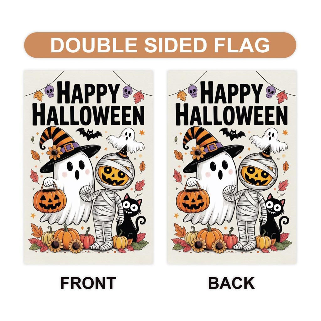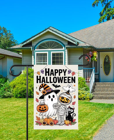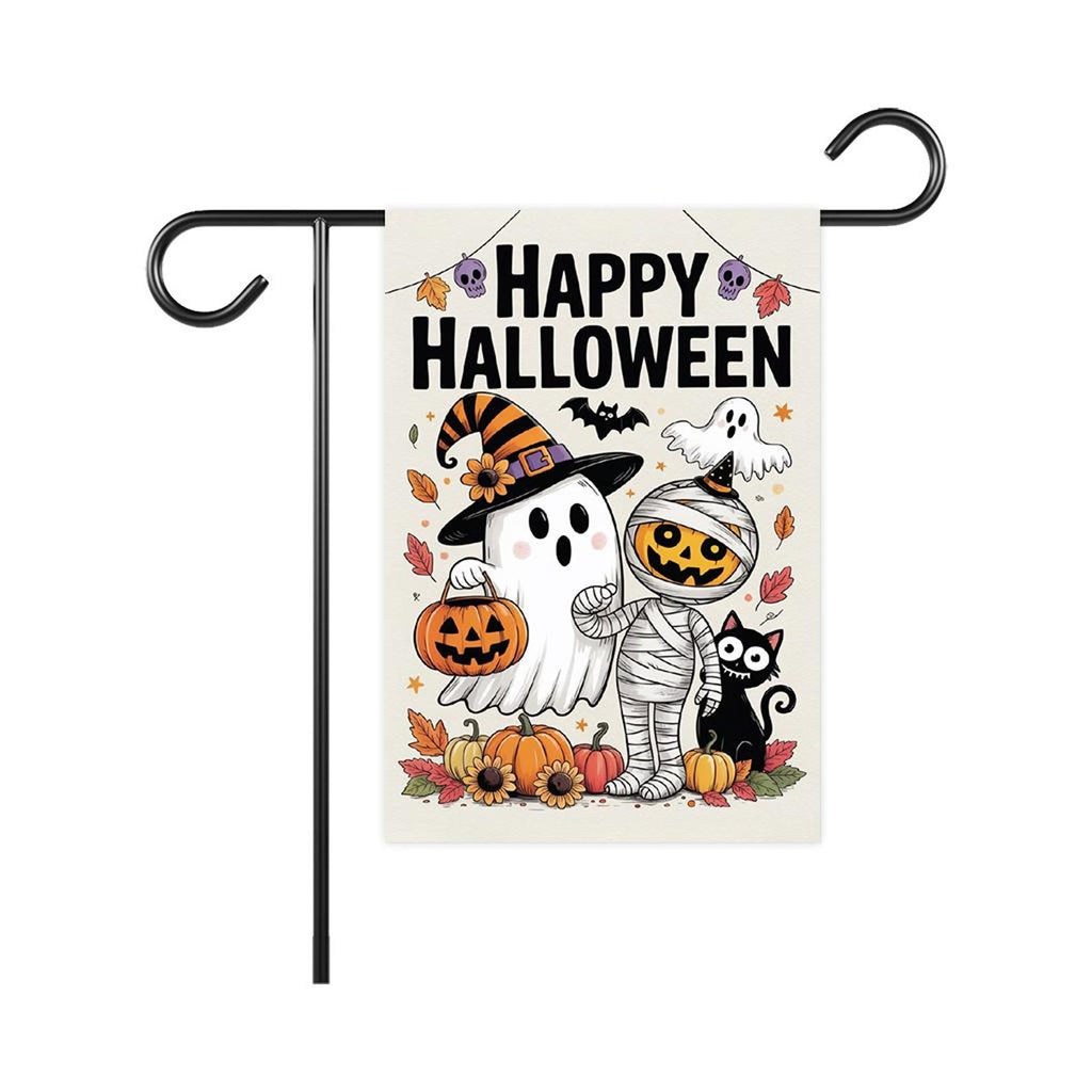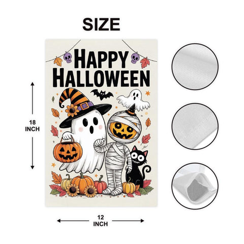 Happy Halloween Garden Flag, Spooky Ghost Jack-O'-Lantern Yard Flag, Small Seasonal Fall Decor, Holiday Party Cosplay Welcome Flag.100% Polyester.Same Design is Printed On Both Sides,Black Inside Lining.Features Sleeve At Top.Pole, Hooks, Or Fasteners Are Not Included.