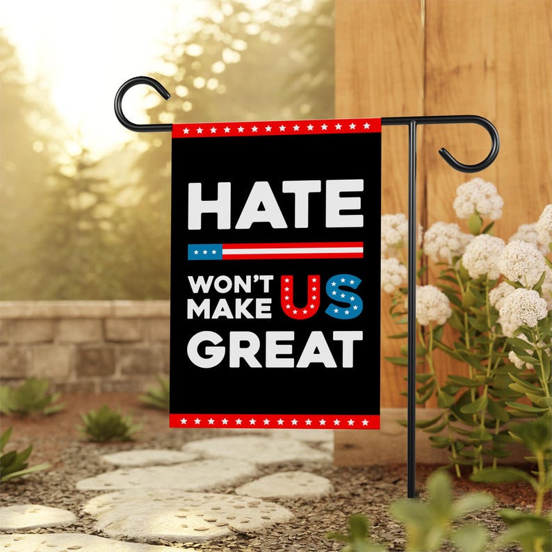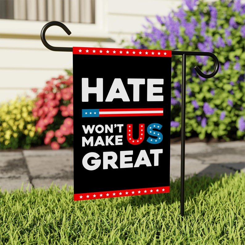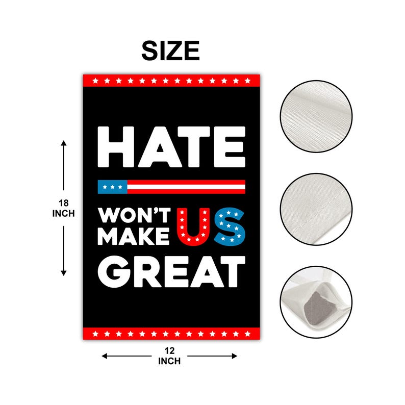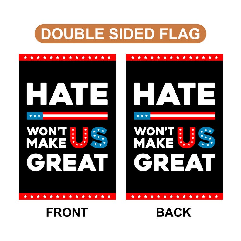 Hate Won't Make US Great Garden Flag, Double Sided, Resist Hate, Anti-Trump, Pro Women's Rights, Resist Racism, Resist Fascism Flag.