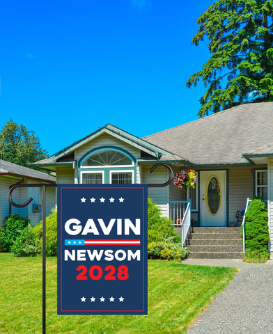 Make America Gavin Again Garden Flag, 12x18 Inch Double Sided, Gavin Newsom For President, Presidential Election 2028, Newsom Political Flag100% Polyester.Same Design is Printed On Both Sides,Black Inside Lining.Features Sleeve At Top.Pole, Hooks, Or Fasteners Are Not Included.