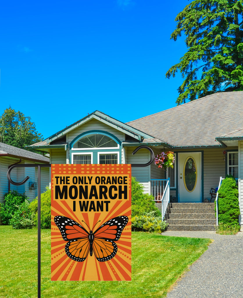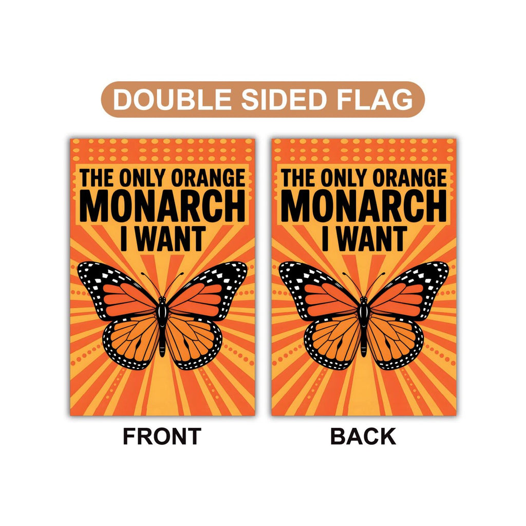 No Kings In America Garden Flag, Double Sided, The Only Orange Monarch I Want, Anti-Trump, Resist Racism Flag, Resist Fascism Flag100% Polyester.Same Design is Printed On Both Sides,Black Inside Lining.Features Sleeve At Top.Pole, Hooks, Or Fasteners Are Not Included.