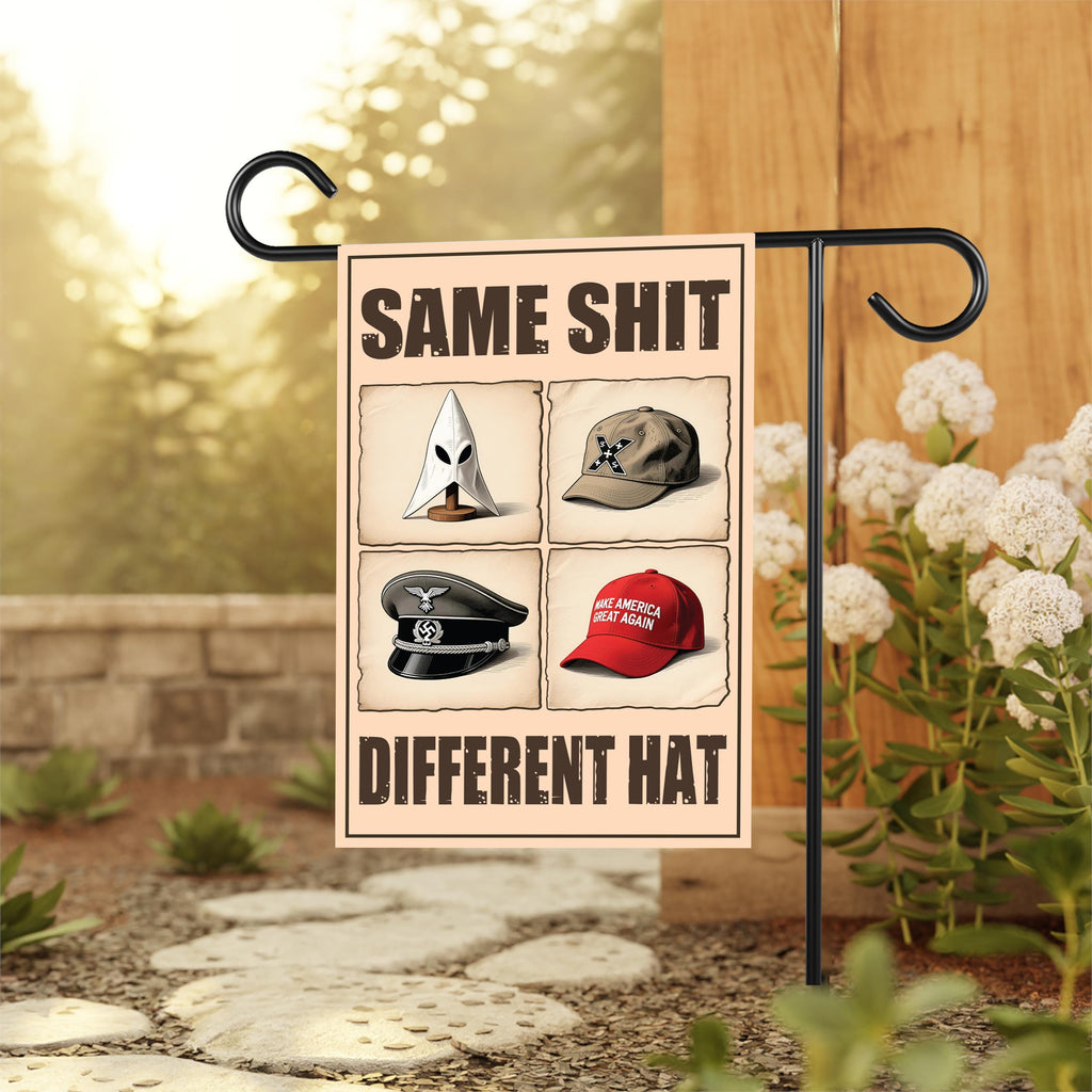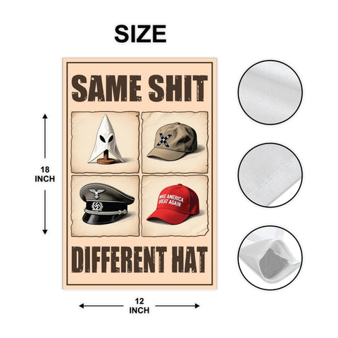 No Kings In America Garden Flag, Double Sided, Different Hat, Democracy Not Oligarchy, Anti-Trump, Resist Racism Flag, Resist Fascism Flag100% Polyester.Same Design is Printed On Both Sides,Black Inside Lining.Features Sleeve At Top.Pole, Hooks, Or Fasteners Are Not Included.