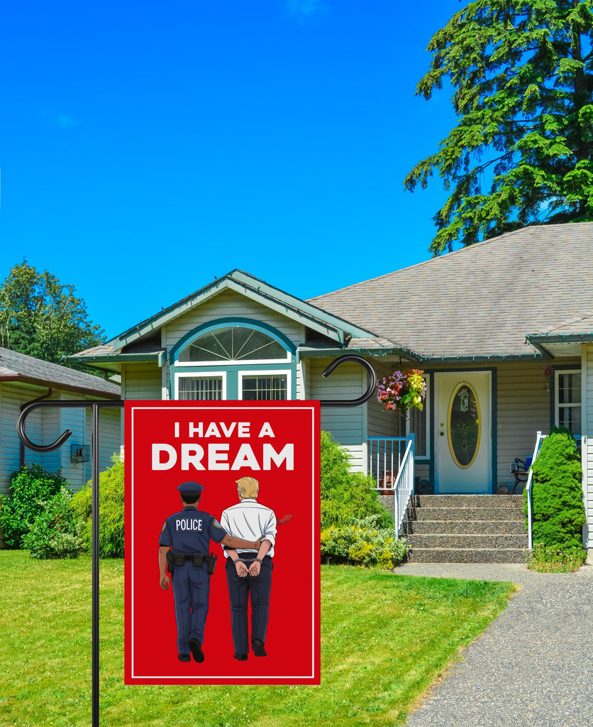 No Kings In America Garden Flag, Double Sided, I Have A Dream, Anti-Trump, Resist Racism Flag, Resist Fascism Flag100% Polyester.Same Design is Printed On Both Sides,Black Inside Lining.Features Sleeve At Top.Pole, Hooks, Or Fasteners Are Not Included.