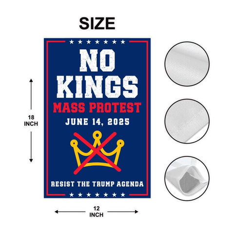 No Kings Mass Protest Garden Flag, 12x18 Inch Double Sided, Resist Hate Flag, Anti-Trump Flag, Resist Racism Flag, Resist Fascism Flag