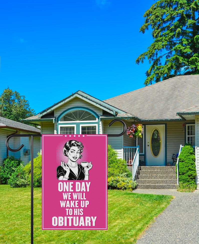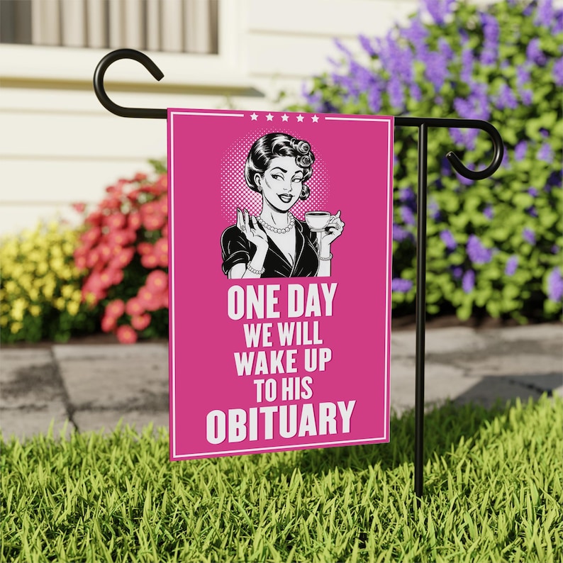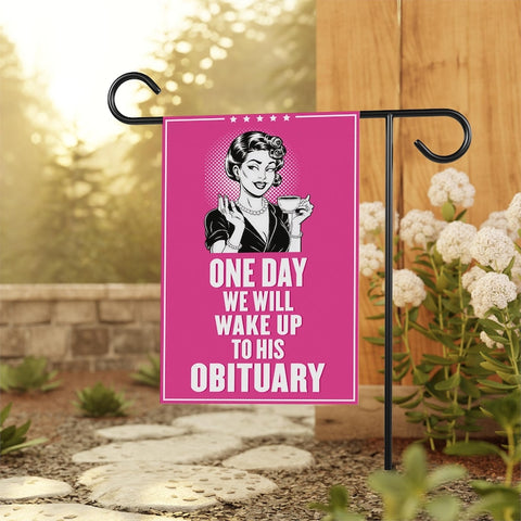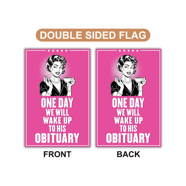 One Day We Will Wake Up to His Obituary Garden Flag, Double Sided, Resist Hate, Anti-Trump, Pro women rights, Resist Racism, Resist Fascism Flag.