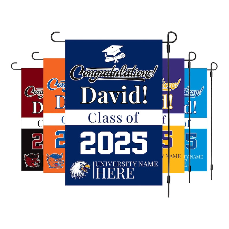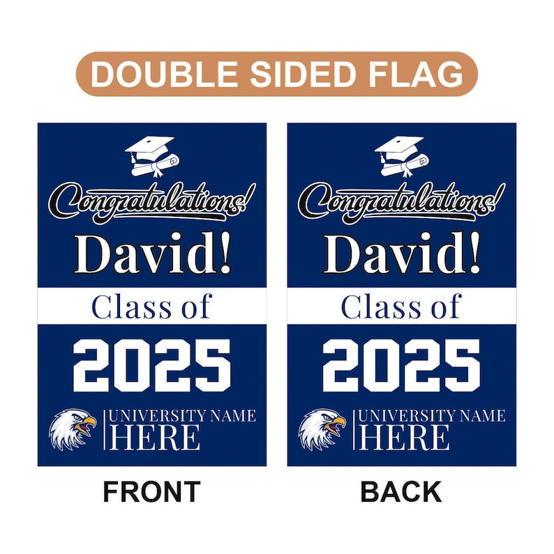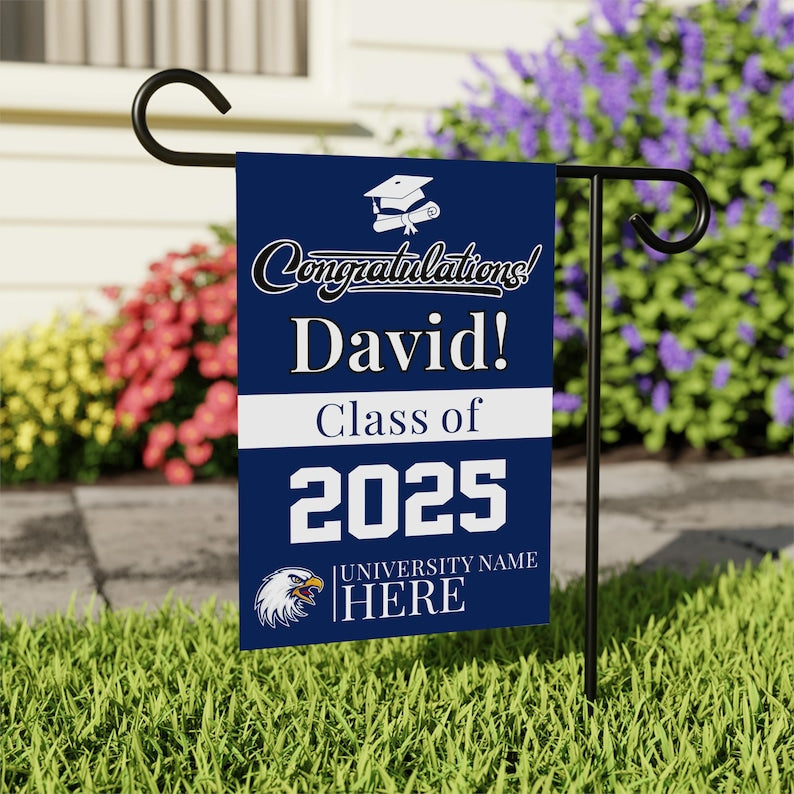 Personalized College Graduation 2025 Garden Flag, Double Sided, Custom School & University Logo, Class of 2025 Yard Sign, Graduate Celebration Flag