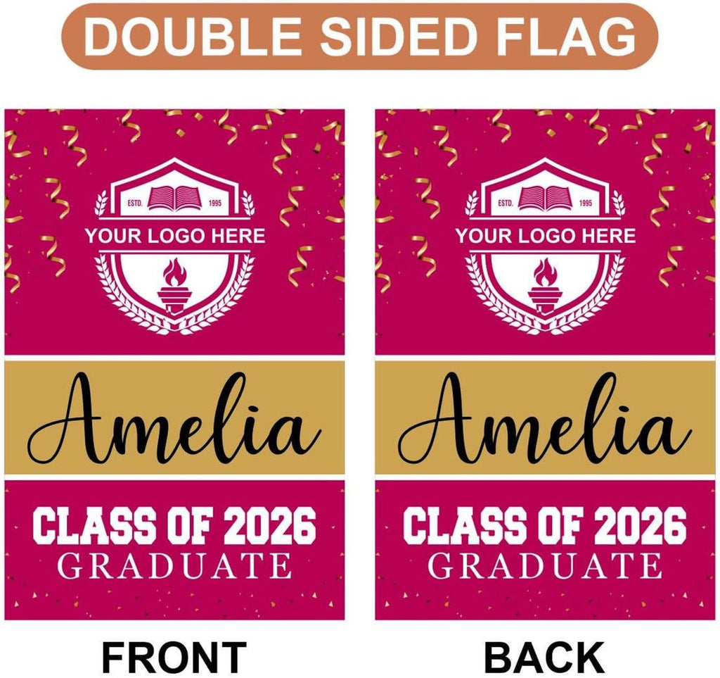 Personalized College Graduation Garden Flag, Double-Sided Custom School, University Logo, Class of 2026 Yard Sign, Graduate Celebration Flag