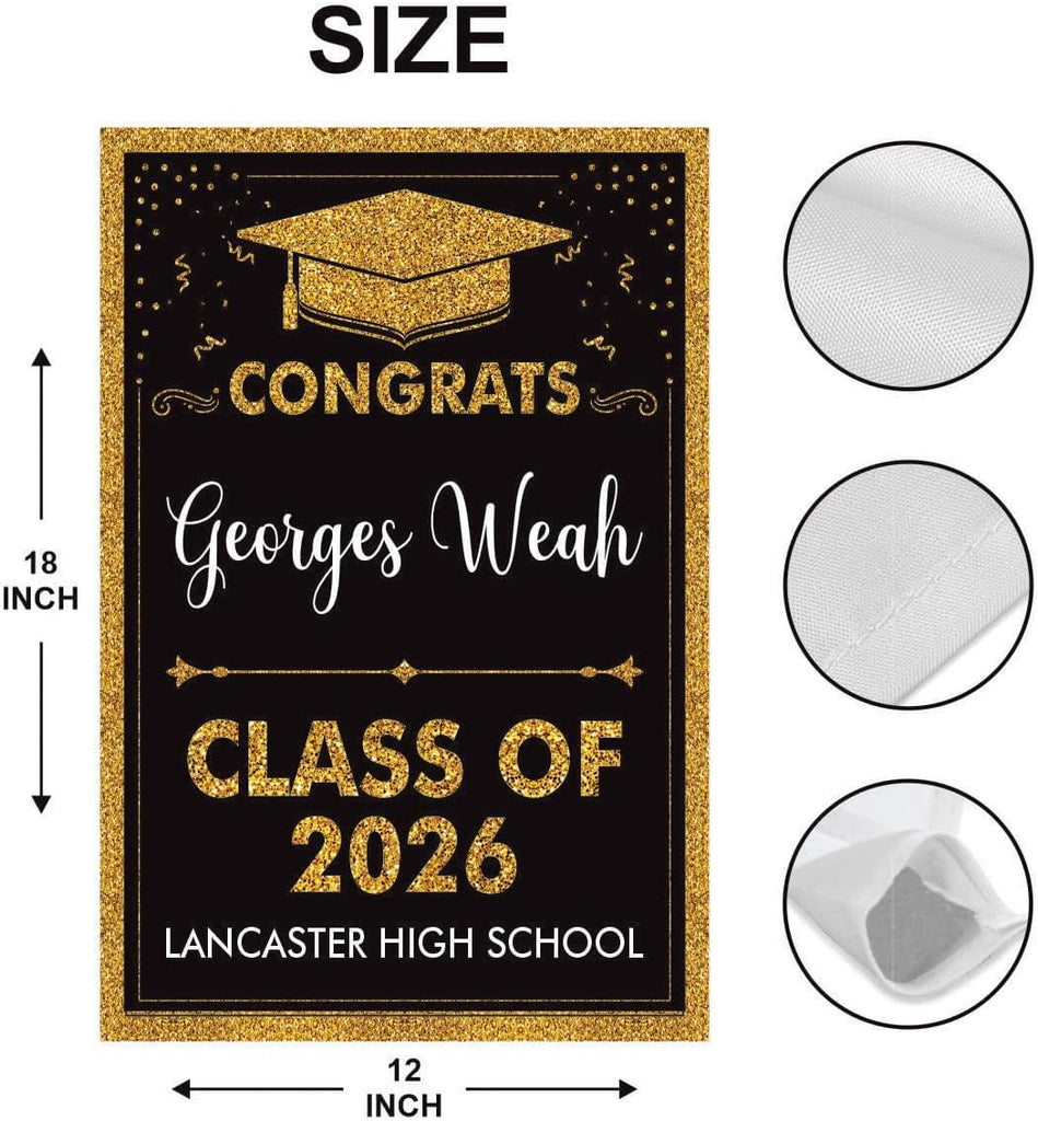 Personalized Graduation Garden Flag, Double Sided, Custom Name & School, Outdoor Graduation Decoration 2026 Yard Sign, Class of 2026 Flag
