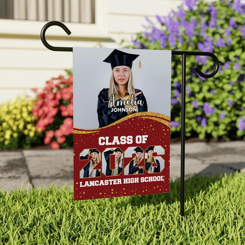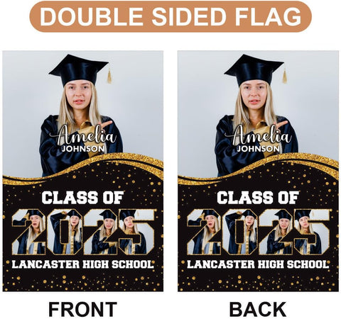 Personalized Graduation Garden Flag with Photo, Double Sided, Custom Name & School, Graduation Decoration 2026 Yard Sign, Class of 2026 Flag
