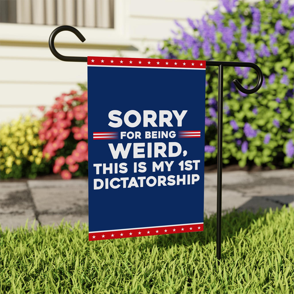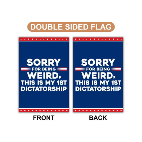 Sorry Being Weird First Dictatorship, No Kings Protest Garden Flag, Double Sided, Anti-Trump Flag, Resist Racism Flag, Resist Fascism Flag.100% Polyester.Same Design is Printed On Both Sides,Black Inside Lining.Features Sleeve At Top.Pole, Hooks, Or Fasteners Are Not Included.