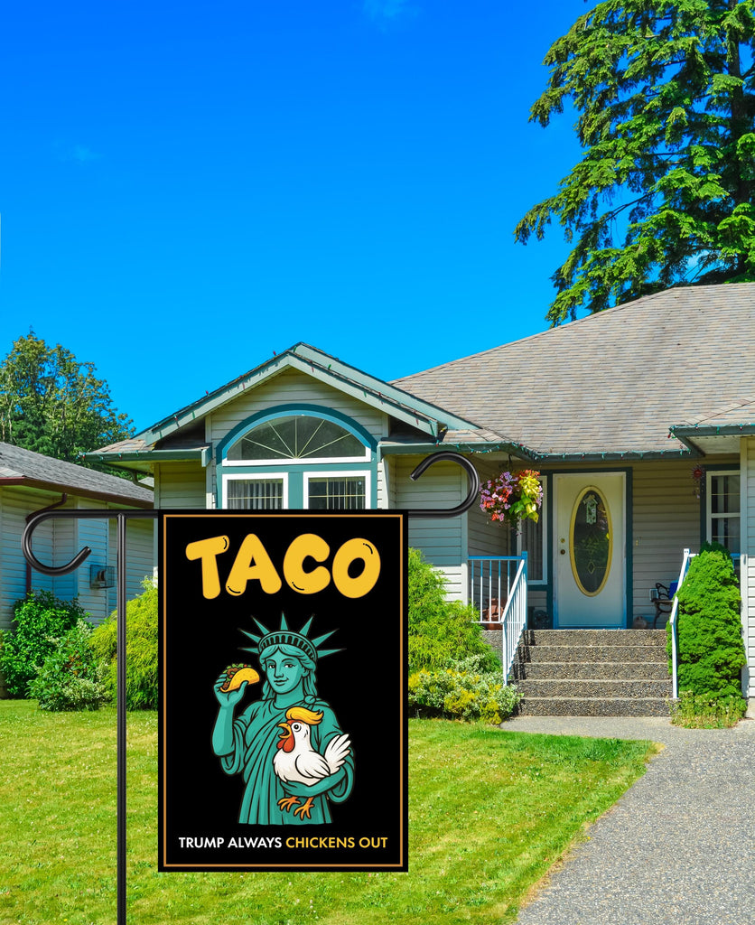 Statue of Liberty, Taco Trump Always Chickens Out Protest Garden Flag, Double Sided