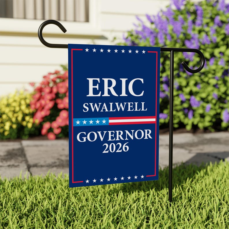 Eric Swalwell For California Governor 2026 Garden Flag, Double Sided, 2026 Governor Flag, Democratic party, Elections Flag, Race Red White & Blue Flag.