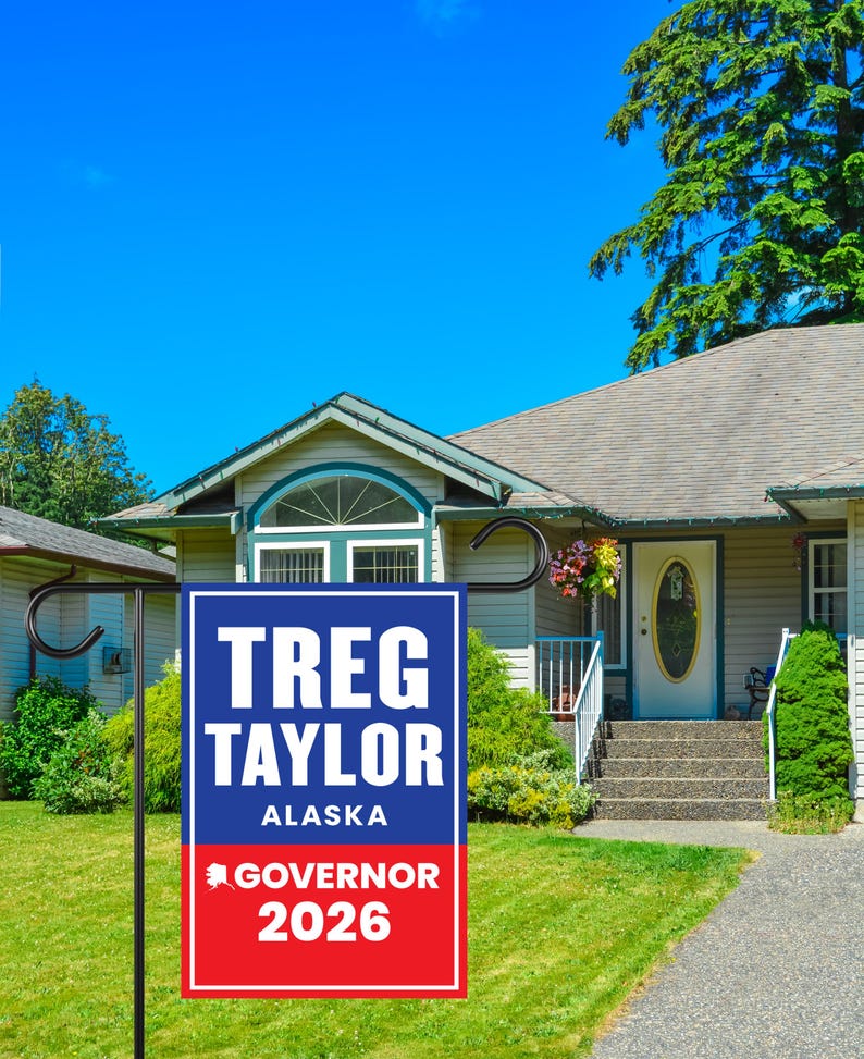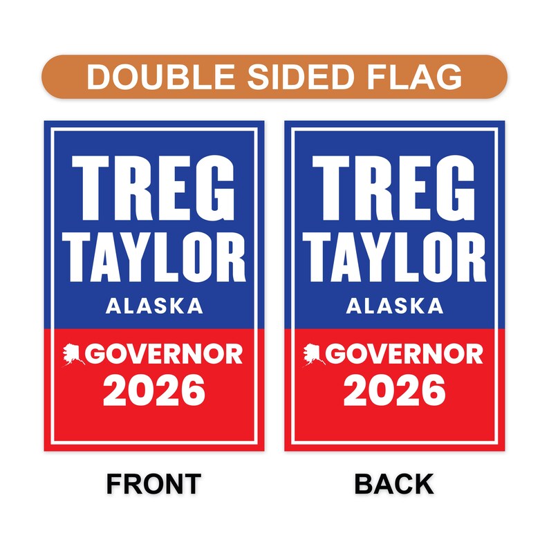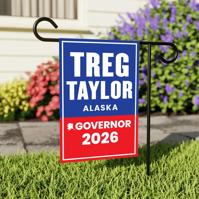 Treg Taylor For Alaska Governor 2026 Garden Flag, Double Sided, 2026 Governor Flag, Republican party, Elections Flag, Race Red White & Blue Flag.