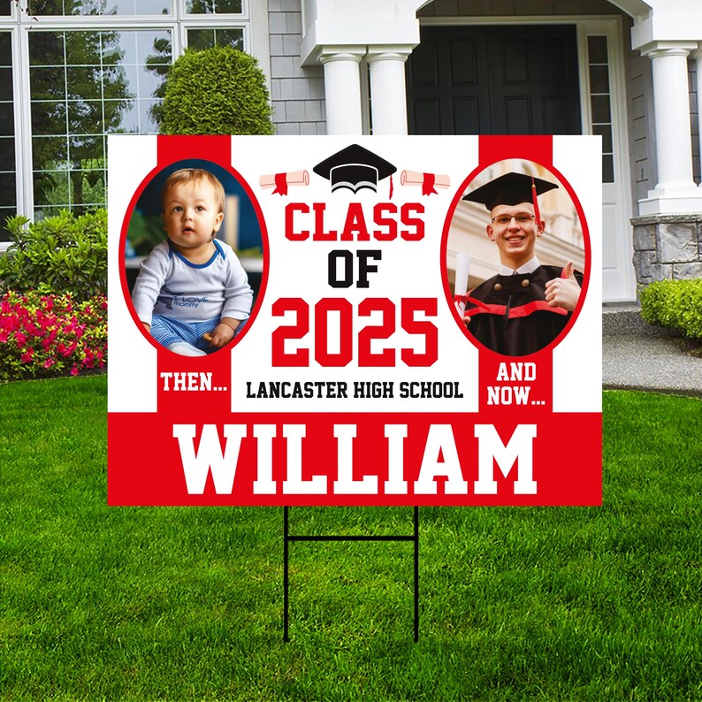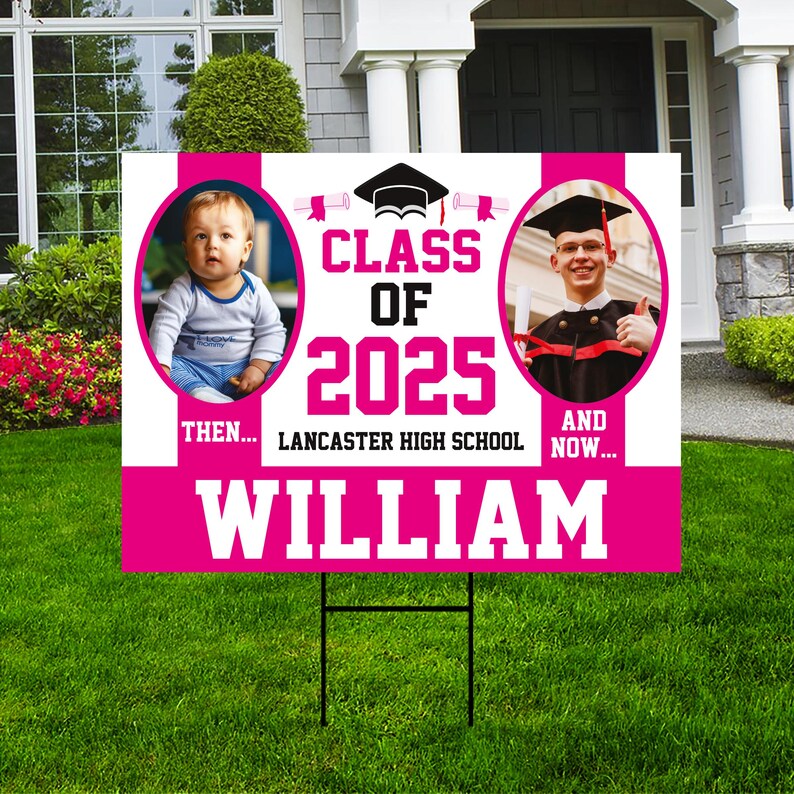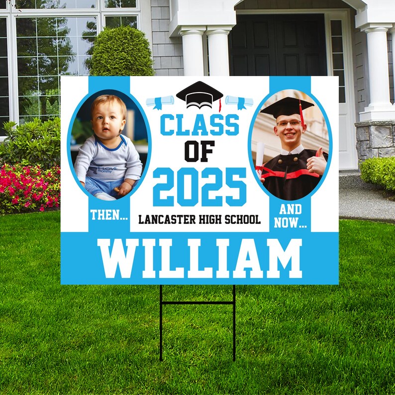 Personalized Graduation Yard Sign 2025 with Photo - Class of 2025, Grad Sign, Custom Graduation 2025 Yard Sign with Metal H-Stake. Economical and durable, our Coroplast Yard Signs are a staple of outdoor advertising. These Custom Class of 2025 Yard Sign for Business full color direct printed graphics are vertically fluted for use with an H-Stake. Coroplast is typically used for yard, parking, real estate, and election signs. They are waterproof.