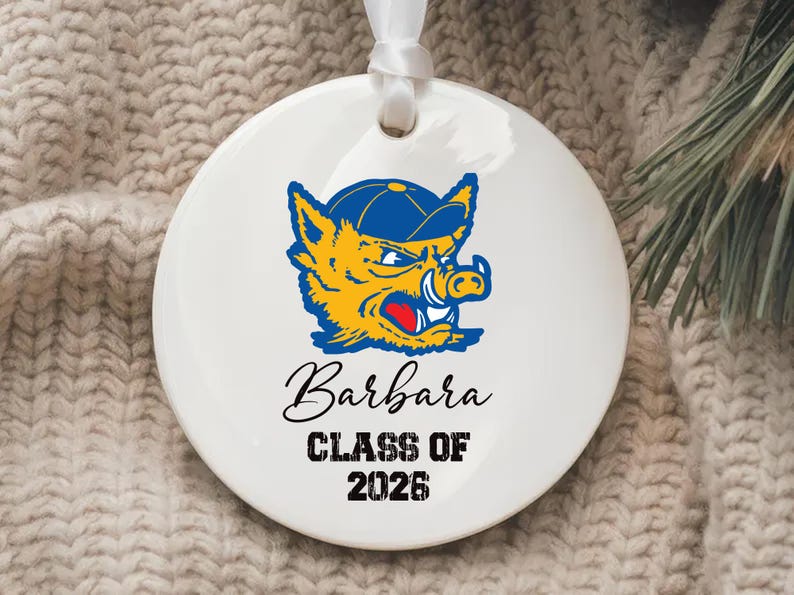 Commemorate this important milestone with a personalized ornament that honors the journey and the school behind it.