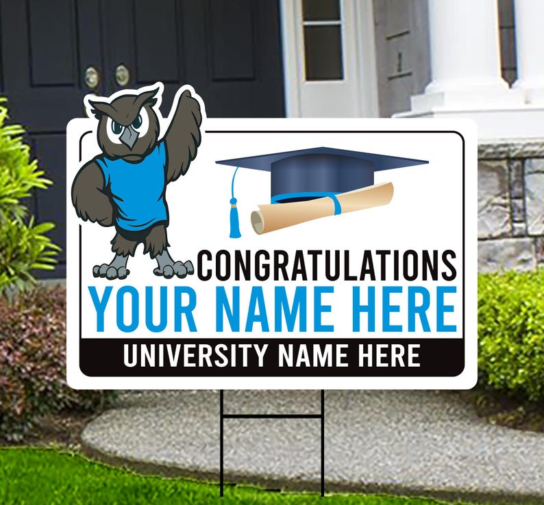 Personalized College Graduation Yard Sign 2025, College Logo Sign, Custom Graduate School College University Yard Sign with Metal H-Stake. Economical and durable, our Coroplast Yard Signs are a staple of outdoor advertising. These Custom College Bound Yard Sign full color direct printed graphics are vertically fluted for use with an H-Stake. Coroplast is used for yards, parking, real estate, and election signs. They are waterproof. Crafted with care, each piece is made to order, ensuring a unique, personalized touch just for you