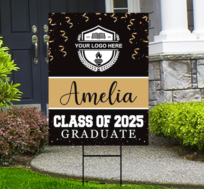 Personalized Graduation Senior Yard Sign 2025, Senior Grad Sign, Class of 2025, Custom Graduation 2025 Yard Sign with Metal H-Stake, Graduation Gifts. Economical and durable, our Coroplast Yard Signs are a staple of outdoor advertising. These Custom Class of 2025 Yard Sign for Business full color direct printed graphics are vertically fluted for use with an H-Stake. Coroplast is typically used for yard, parking, real estate, and election signs. They are waterproof.