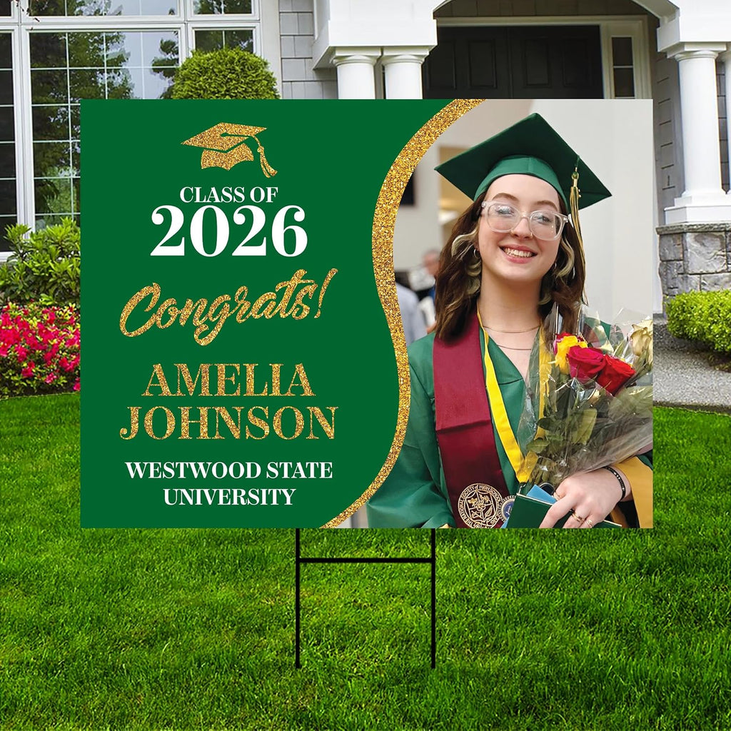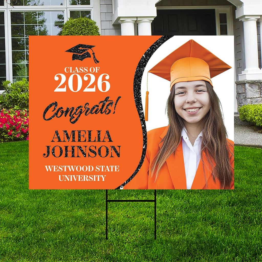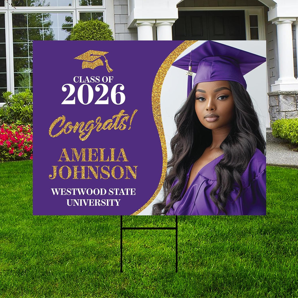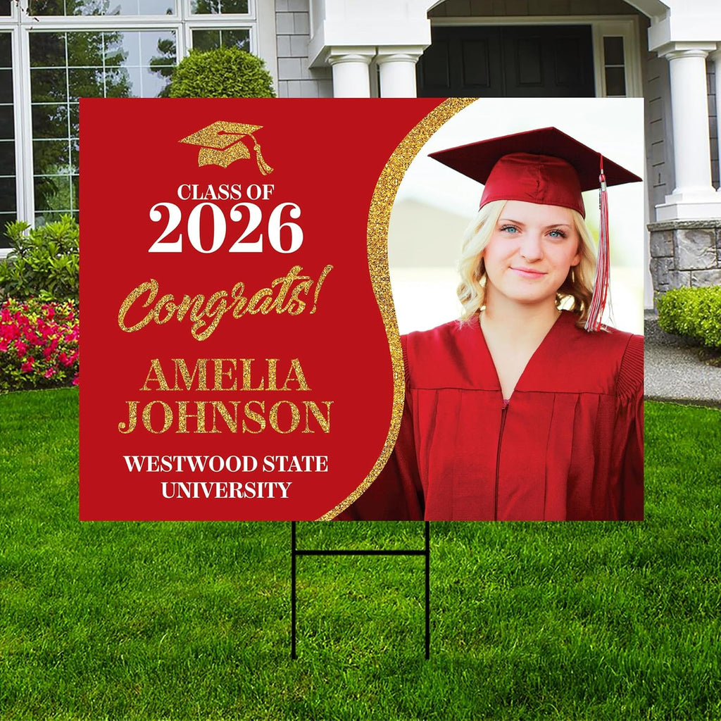 Custom Graduation 2026 Yard Sign Are Engineer Grade Rectangle and Professional Appearance.Durable 4 Mm Thick Corrugated Plastic, Weatherproof and Never to Fade Personalized Graduation Sign with Photo.