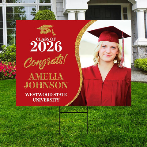 Personalized Graduation Yard Sign 2026 with Photo - Grad Sign, Class of 2026, Custom Graduation 2026 Yard Sign with Metal H-Stake. Economical and durable, our Coroplast Yard Signs are a staple of outdoor advertising. These Custom Class of 2026 Yard Sign for Business full color direct printed graphics are vertically fluted for use with an H-Stake. Coroplast is typically used for yard, parking, real estate, and election signs. They are waterproof.