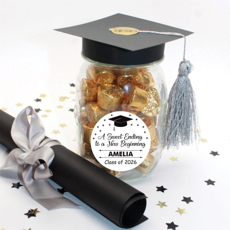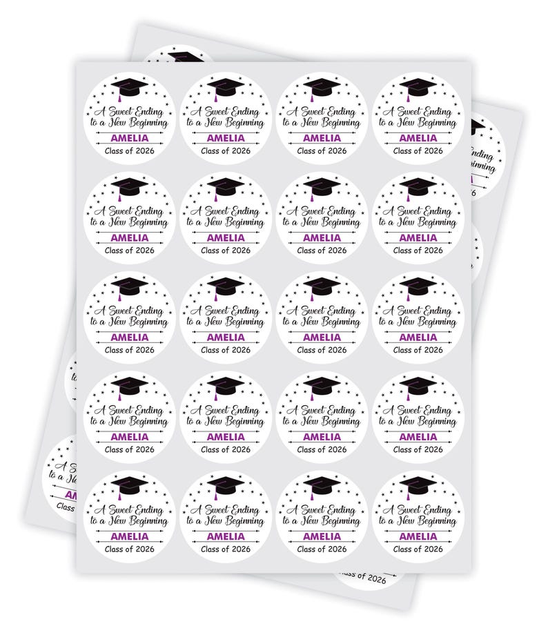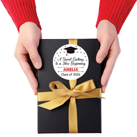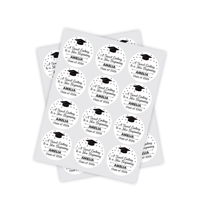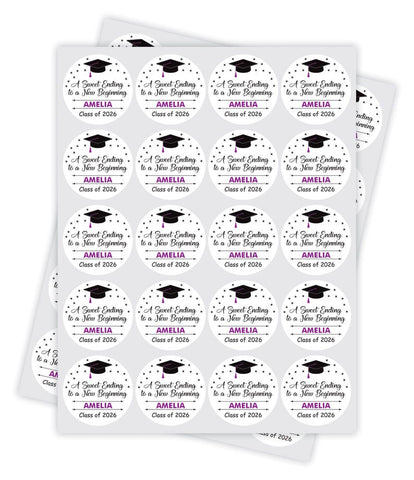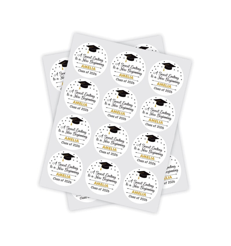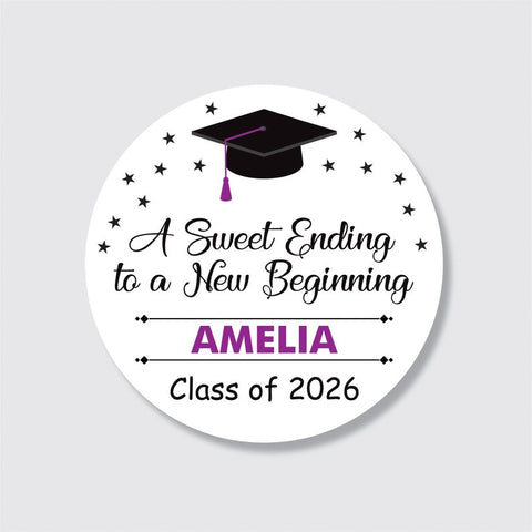 Personalized Graduation 2026 Stickers, Custom Class of 2026 Stickers, A Sweet Ending To A New Beginning Stickers, 2026 Graduation Labels, Round Graduation Party Favors, Gift Sticker. Our Personalized Graduation 2026 Stickers are the perfect way to celebrate your high school graduation! These custom stickers are perfect for graduation party favors or gift stickers.