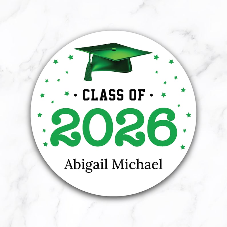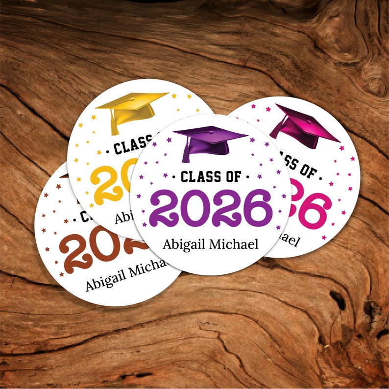 Personalized Graduation 2026 Stickers, Custom Class of 2026 Stickers, 2026 Graduation Labels, Round Graduation Party Favors, Gift Sticker. Our Personalized Graduation 2026 Stickers are the perfect way to celebrate your high school graduation! These custom stickers are perfect for graduation party favors or gift stickers.