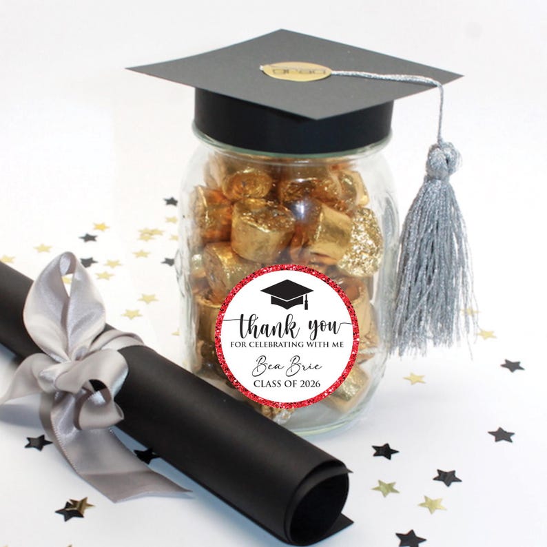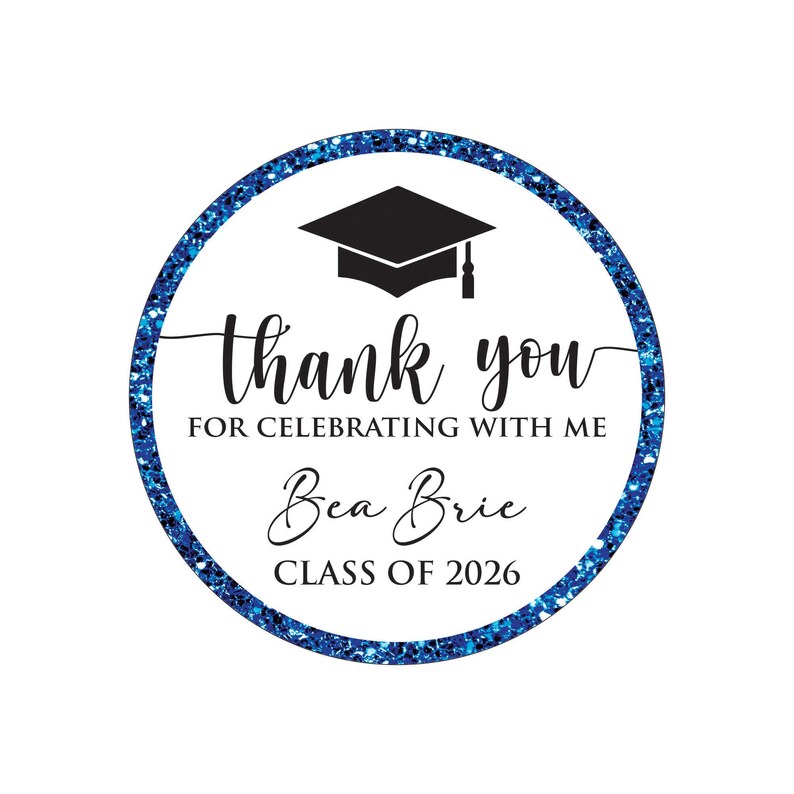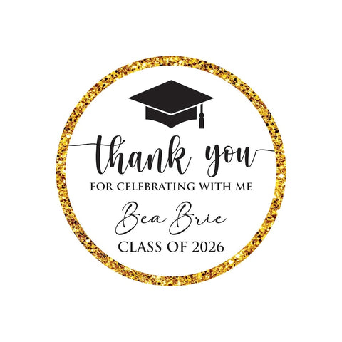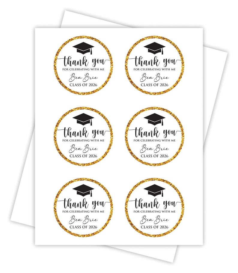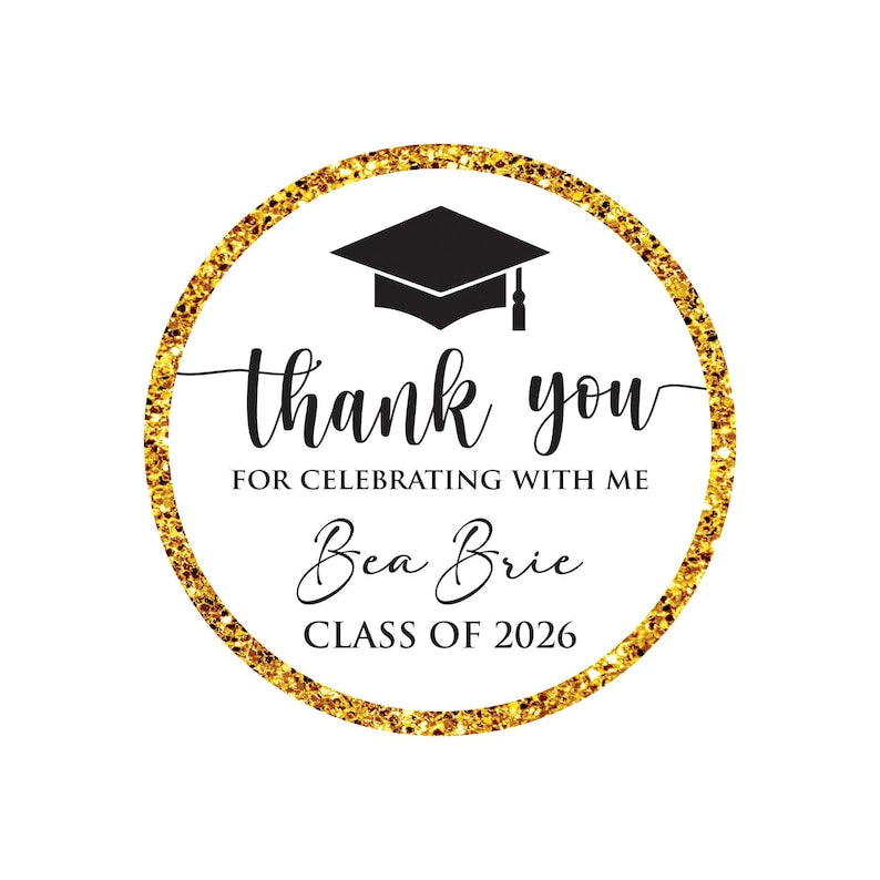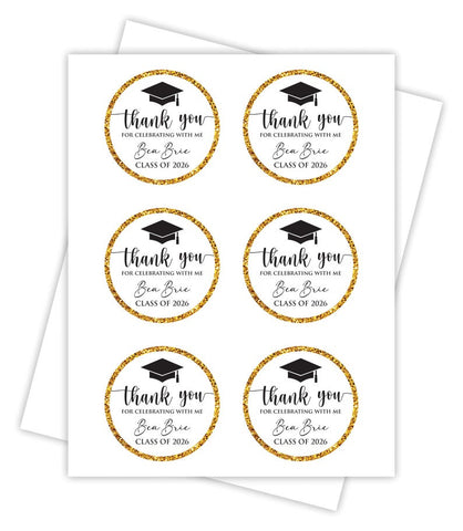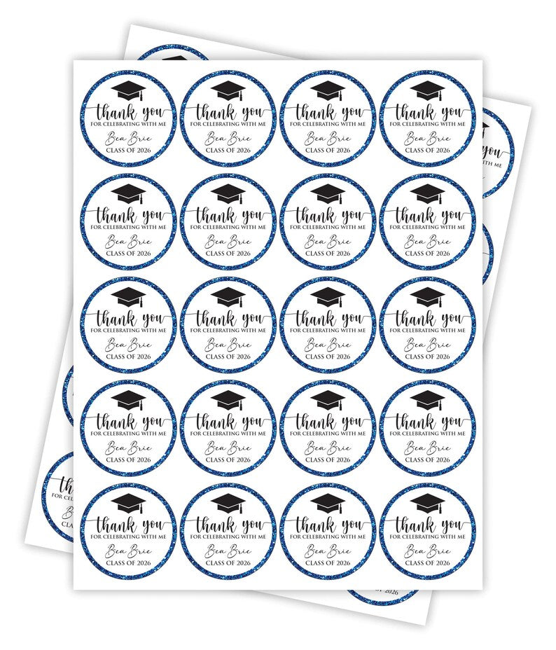 Personalized Graduation 2026 Stickers, Custom Class of 2026 Stickers, Thank You Stickers, 2026 Graduation Labels, Round Graduation Party Favors, Gift Sticker. Our Personalized Graduation 2026 Stickers are the perfect way to celebrate your high school graduation! These custom stickers are perfect for graduation party favors or gift stickers.
