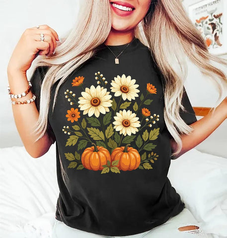 Boho Fall Floral Shirt, Retro Autumn Vibes Shirt, Vintage Pumpkin Season Tee, Fall Aesthetic Unisex Fall Shirt, Autumn Gifts, Gifts for Her