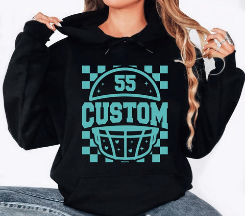 Custom Checkered Football Hoodie, Retro Game Day Mama Tee, Personalized Team & Number Shirt, Football Season Shirt, Unisex Sports Shirt