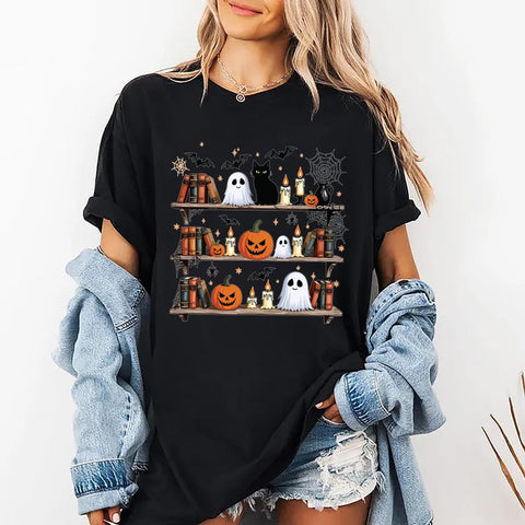 Halloween Book Shelf Shirt, Ghost Reader Book Lover Tee, Boo Reading Shirt, Literature Lover Unisex Fall Shirt, Spooky Gift, Gift for Reader