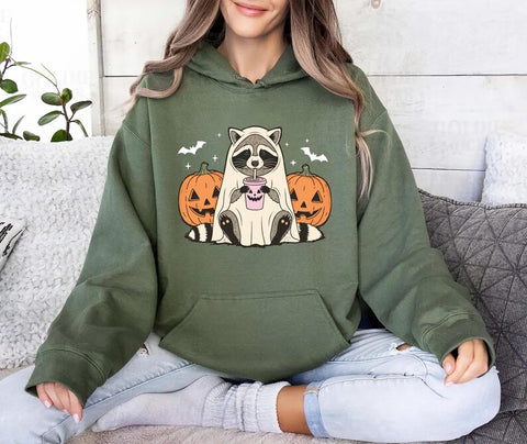 Halloween Raccoon Hoodie, Spooky Season Ghost Raccoon Tee, Cute Fall Animal Shirt, Halloween Shirt, Unisex Autumn Shirt, Raccoon Lover Gifts