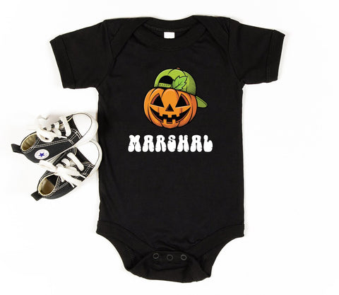 Dress your little guy in festive fall charm with our Personalized Pumpkin Baby Bodysuit, Boys Fall Baby Shirt, and Toddler Sweatshirt! Featuring his name with a cute pumpkin design, this custom Halloween outfit is perfect for trick-or-treating and family photos.